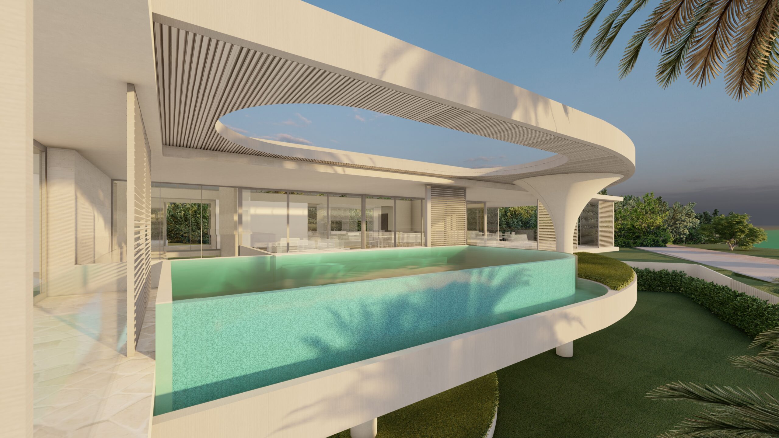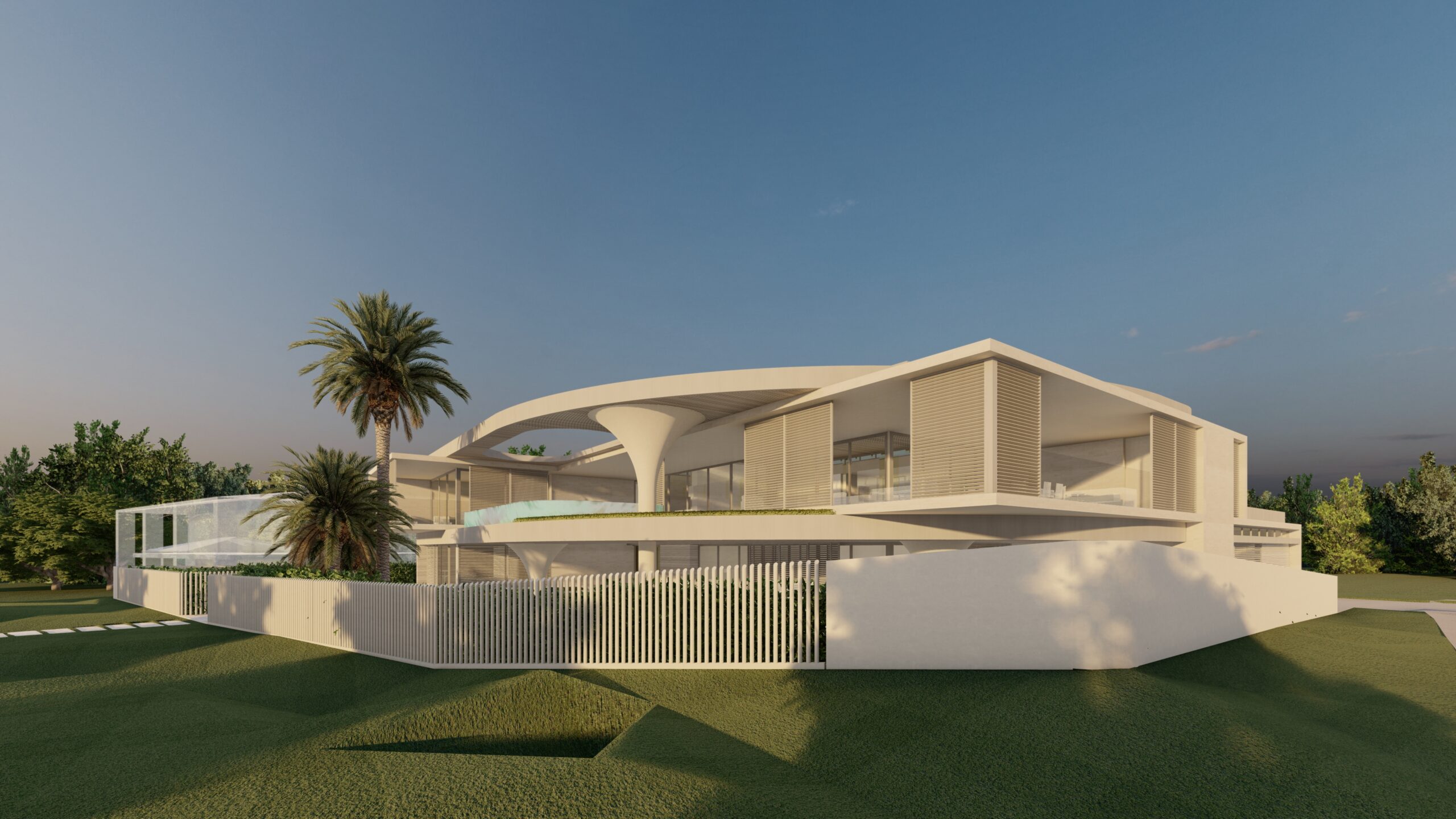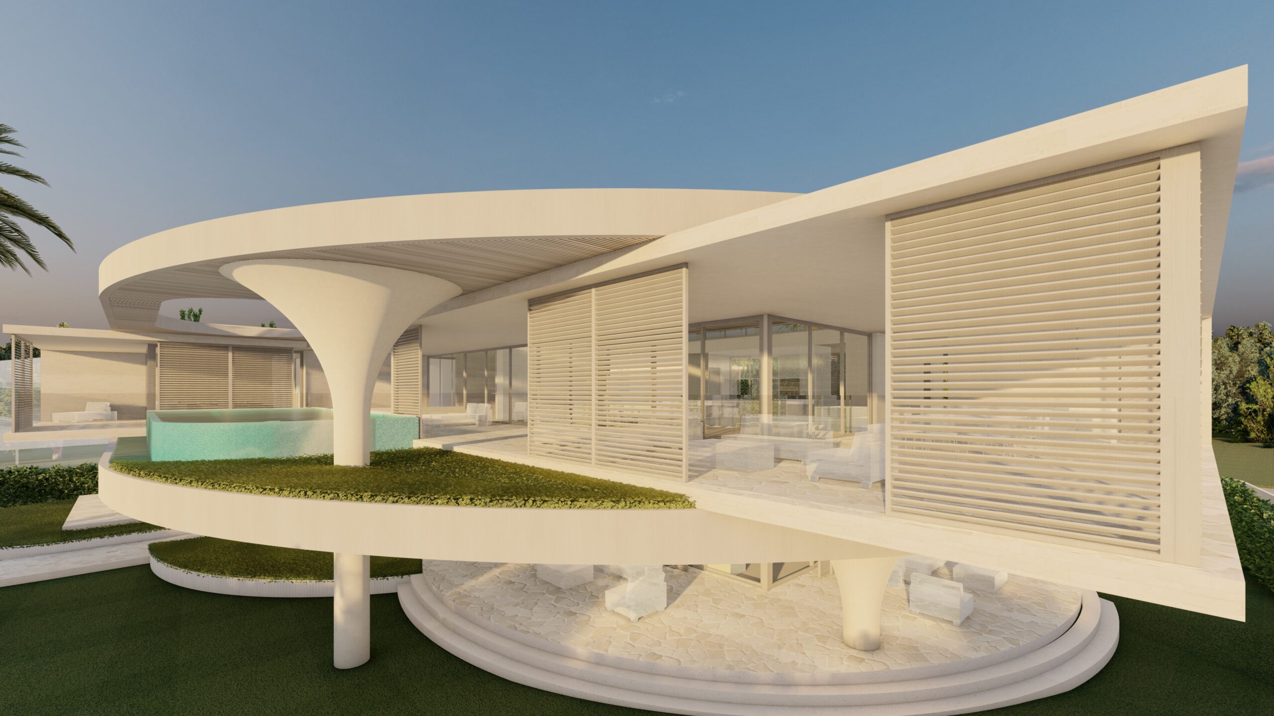 A two storey beachfront home in the exclusive suburb of Fannie Bay. The composition follows a T shaped plan where the curvaceous terrace forms wrap across dual street frontages enveloped within an off form concrete rectilinear shaped facade. A series of large bell shaped columns instil a texture of elegance to the residence encapsulating a new contemporary tropical style of architecture for the Northern Territory.