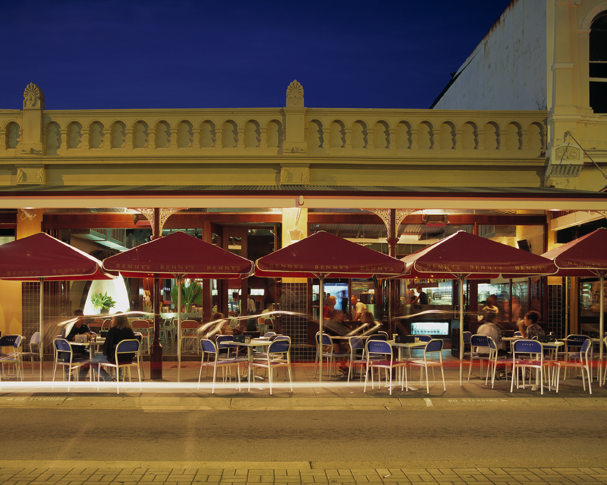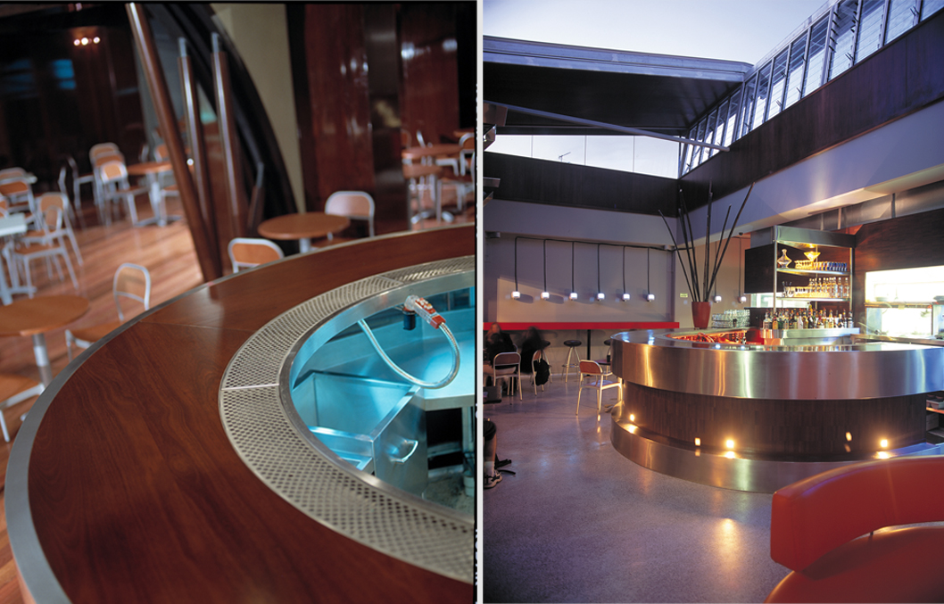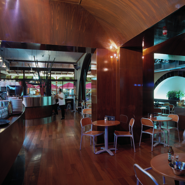 A Lifestyle Orientated bar and café premises which breaks with tradition and sets an exciting direction in hospitality venues. The existing building, originally terrace style shops constructed circa 1900, provided the architectural basis for the interior fitout. Jarrah was selected as the predominant material used in the interior space, being the primary building material of the first part of the nineteenth century, and for its adaptability as a modern design component while conveying an overwhelming sense of warmth. The use of other simple materials such as polished concrete, stainless steel, glass etc. orchestrated in curved planar forms define the contemporary space in a profound yet understated manner.