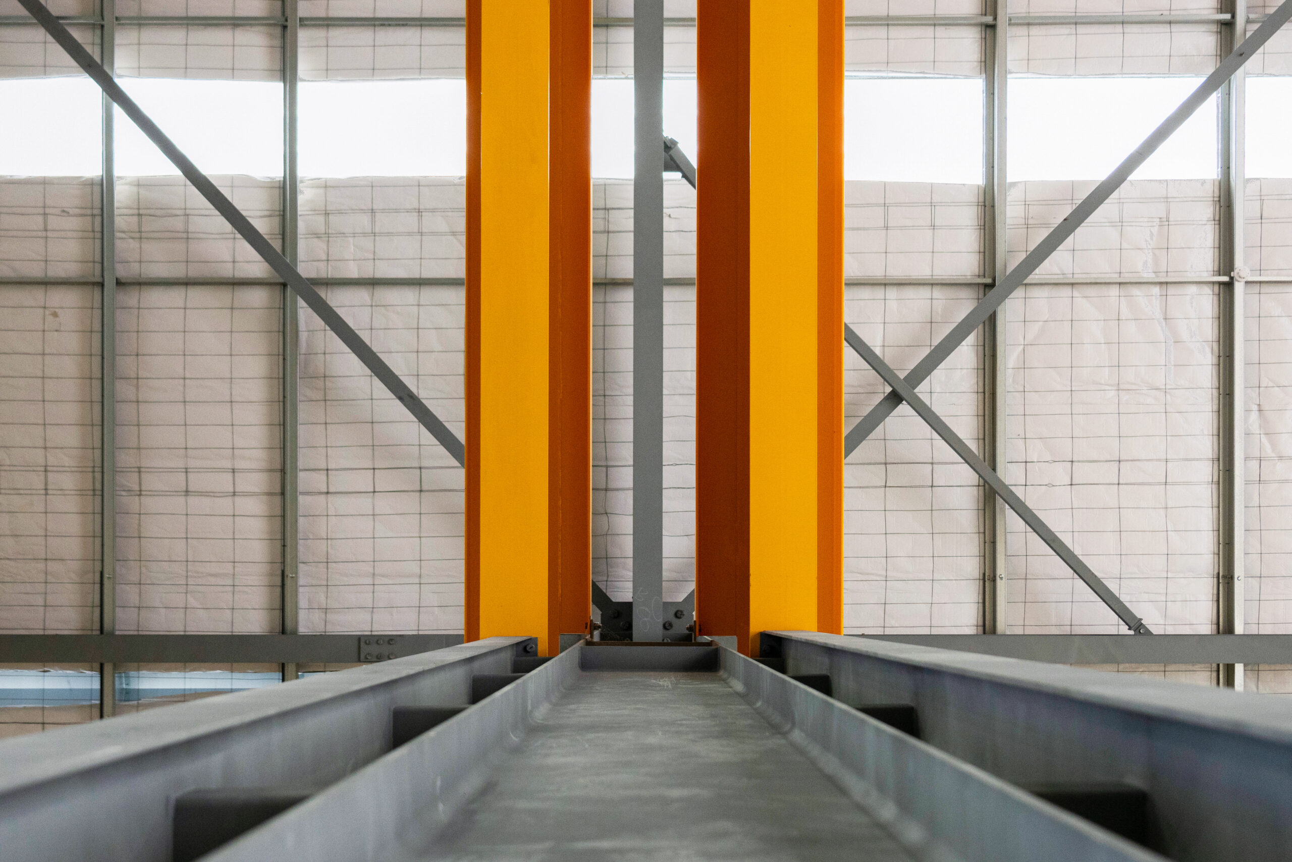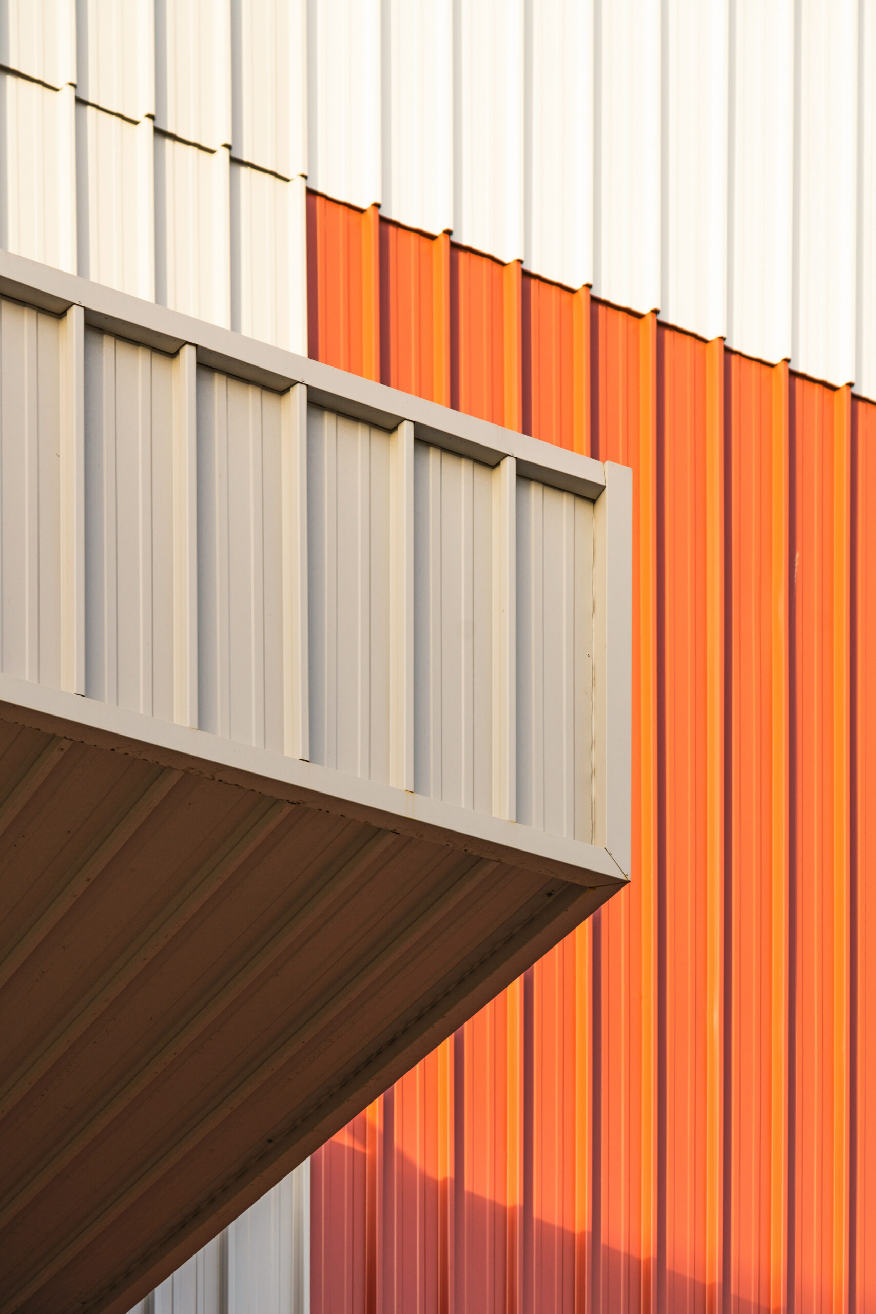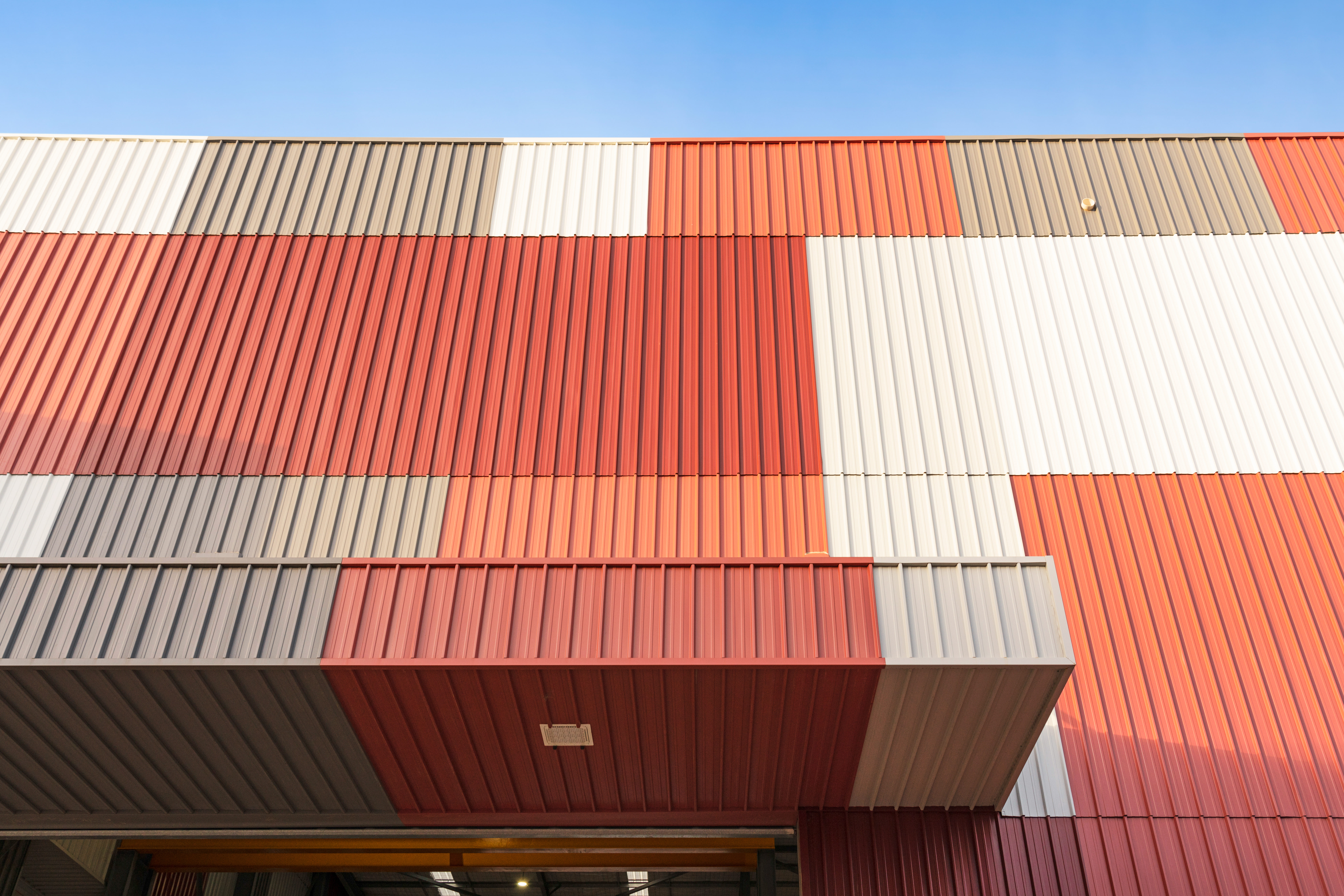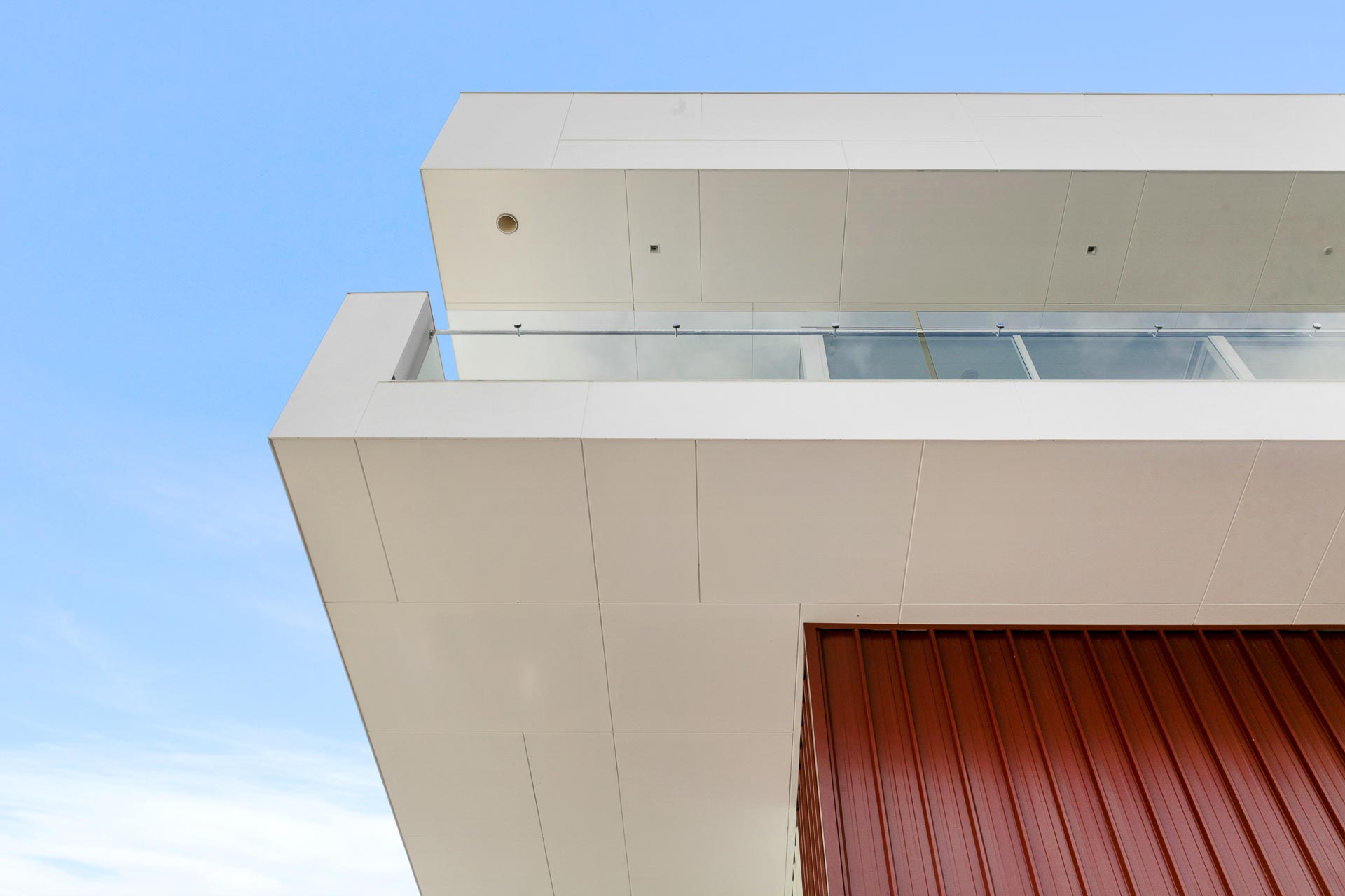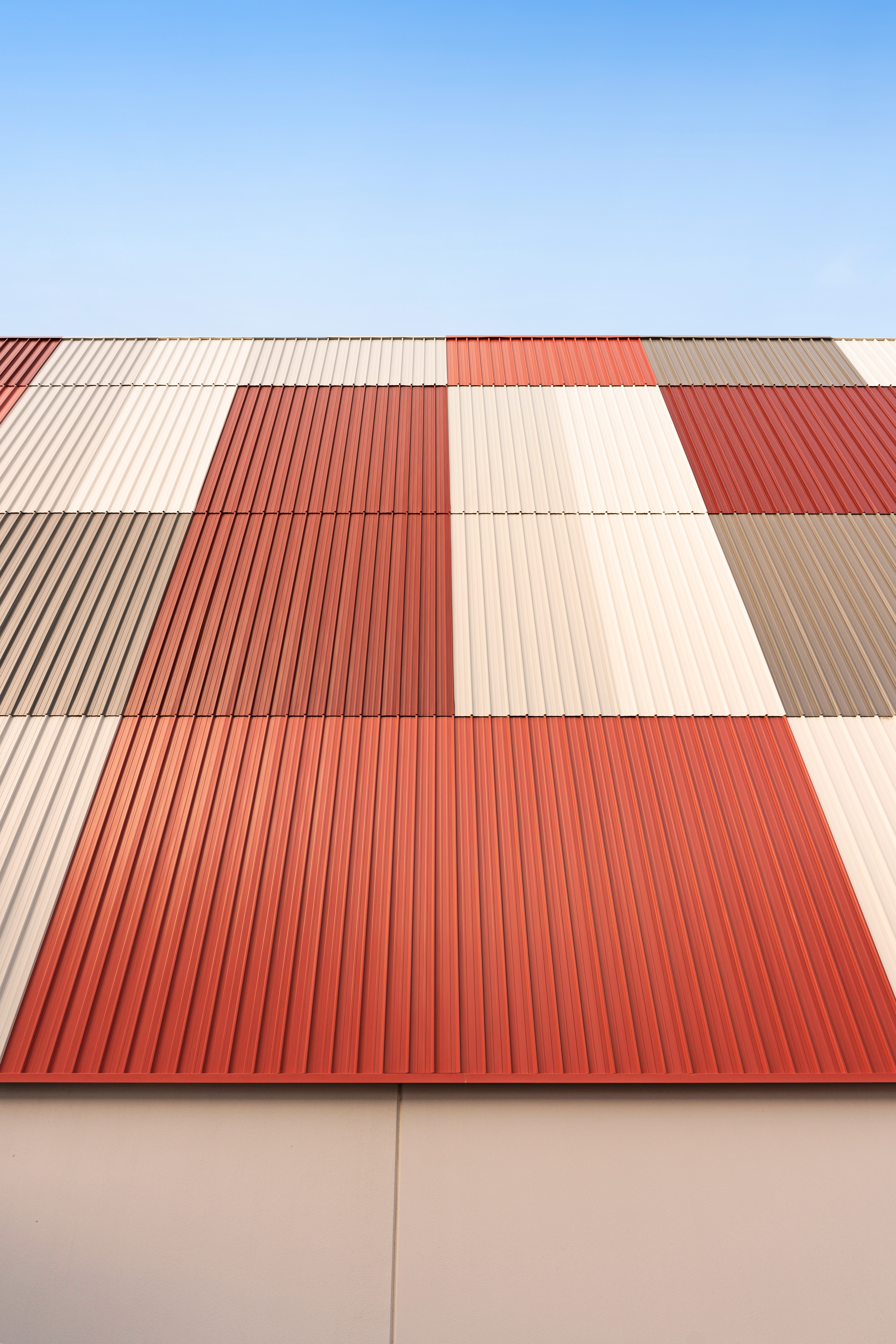 The challenge for the architectural composition, was to develop a way in which the bulk and scale of an extraordinarily large building (120m long, 60m wide, 15m ht) could be visually distorted and ultimately reduced. The office was positioned facing the street, orchestrated as a single cantilevered element, glazed and clad in white CFC sheet with minimal aesthetic thus shielding the large workshop structure behind. The design solution to the workshop, was to apply a gridded pattern of square shaped colour blocking using Fielders Kliplock metal sheet cladding in dark, light and mid red / grey tones to the façade. The colour tones are a derivative of the JOEST “primary red” brand colour and the variance in the colour cleverly distorts the “block like” bulky nature and mass of the structure and reduces its scale and bulk.