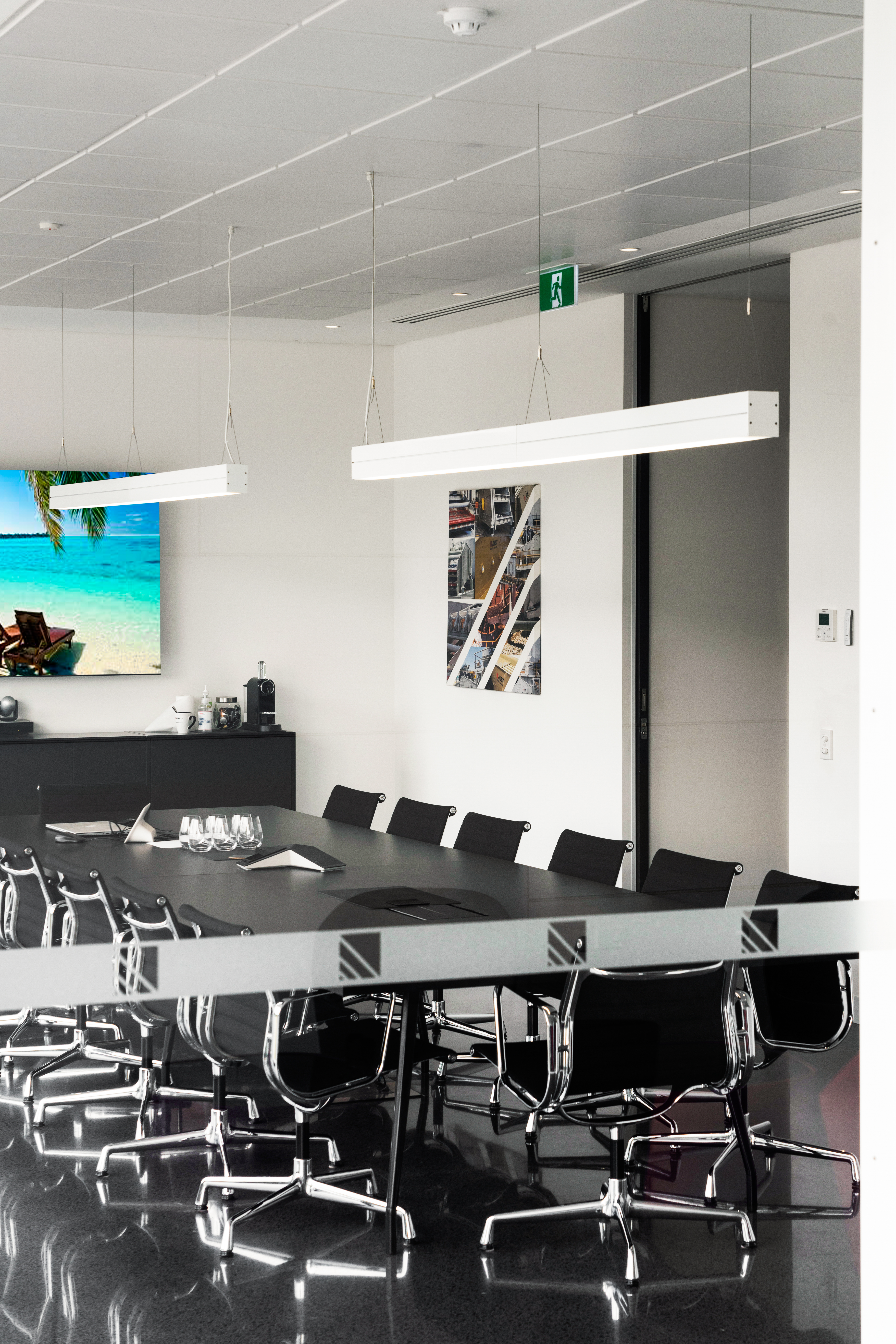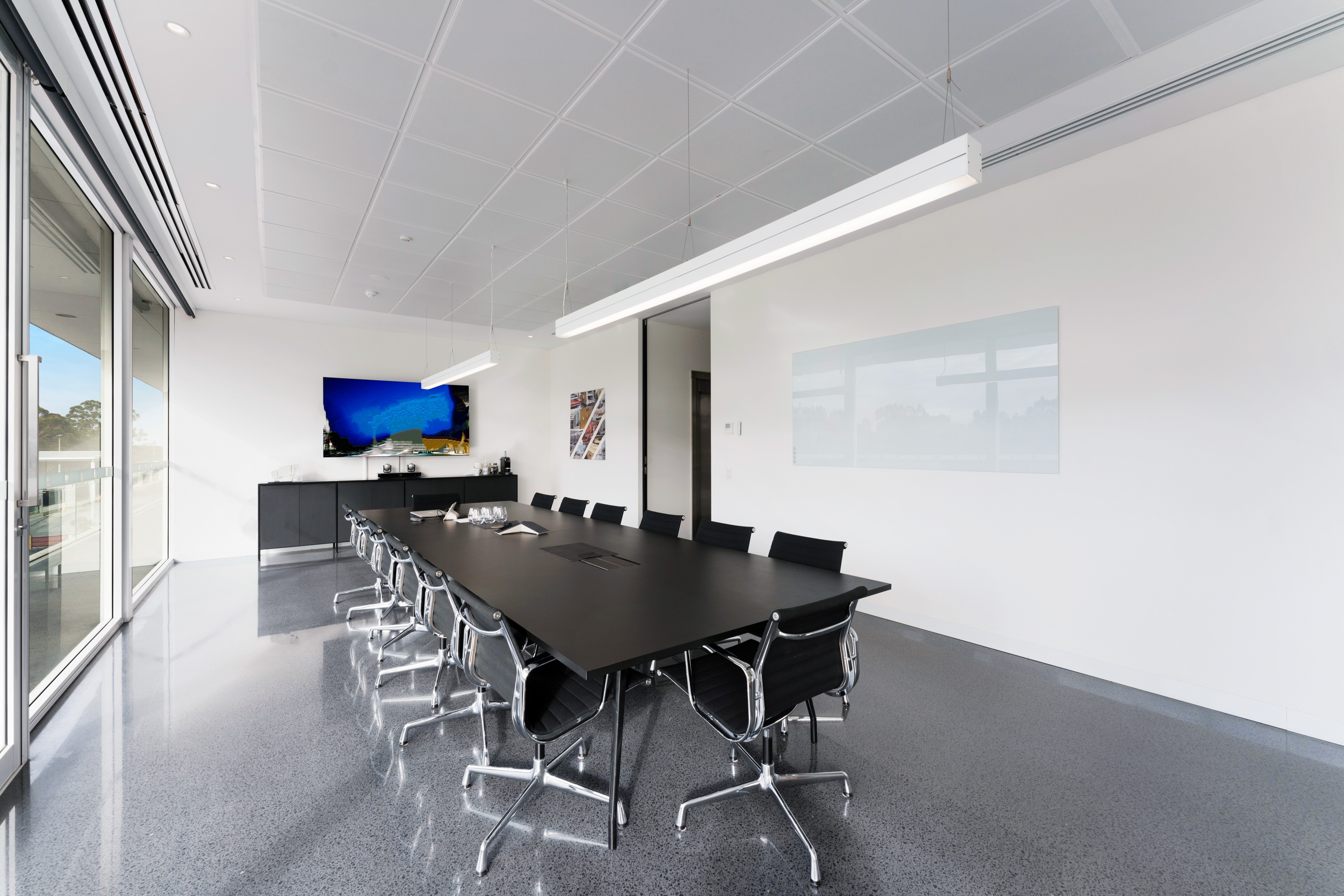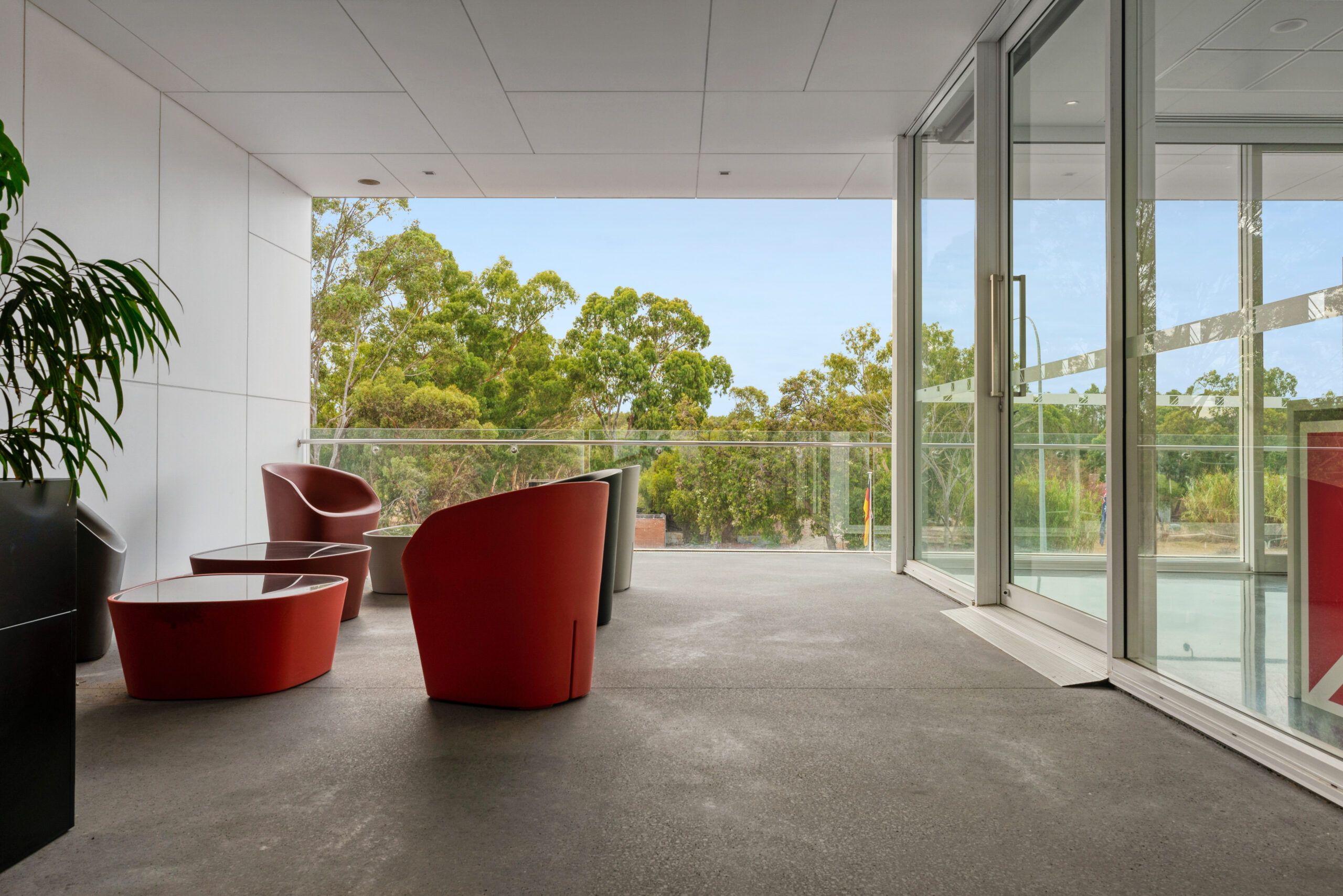 The large open plan office is strategically positioned on the first floor level with limited enclosed offices to eliminate the “notion of hierarchy” amongst the work culture. The focus on staff amenity continues in the office space with a multitude of meeting and other congregational spaces being provided throughout the first floor level. A balcony terrace extends to the entire perimeter of the glass floor to ceiling height windows and terminates in a large outdoor terrace with seating and bbq amenities for staff to enjoy. Large sliding doors within the glazed sections can be opened to enable cross flow ventilation across the office work space and the terrace balcony overlooking the workshop provides a visual connection to and from both areas.