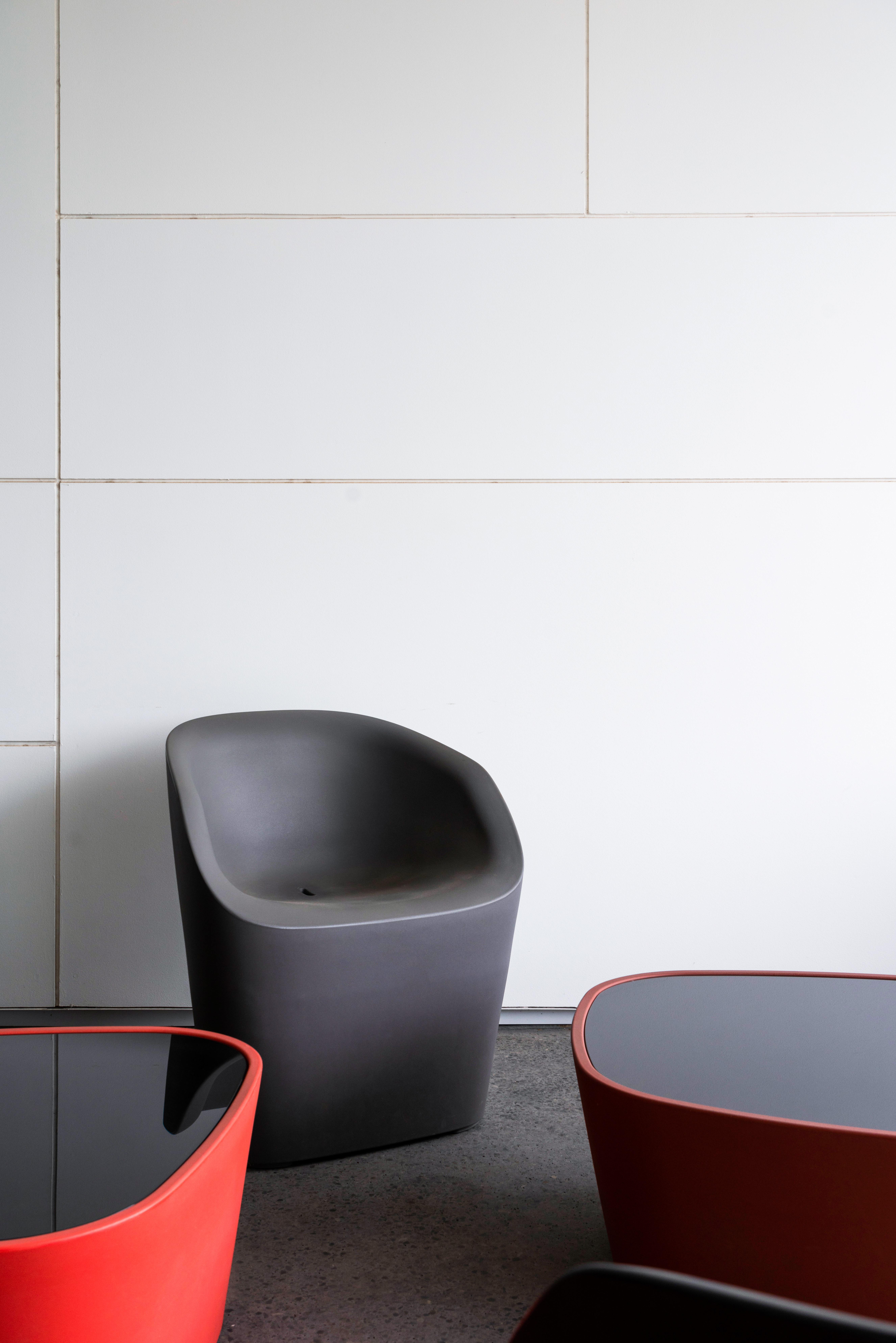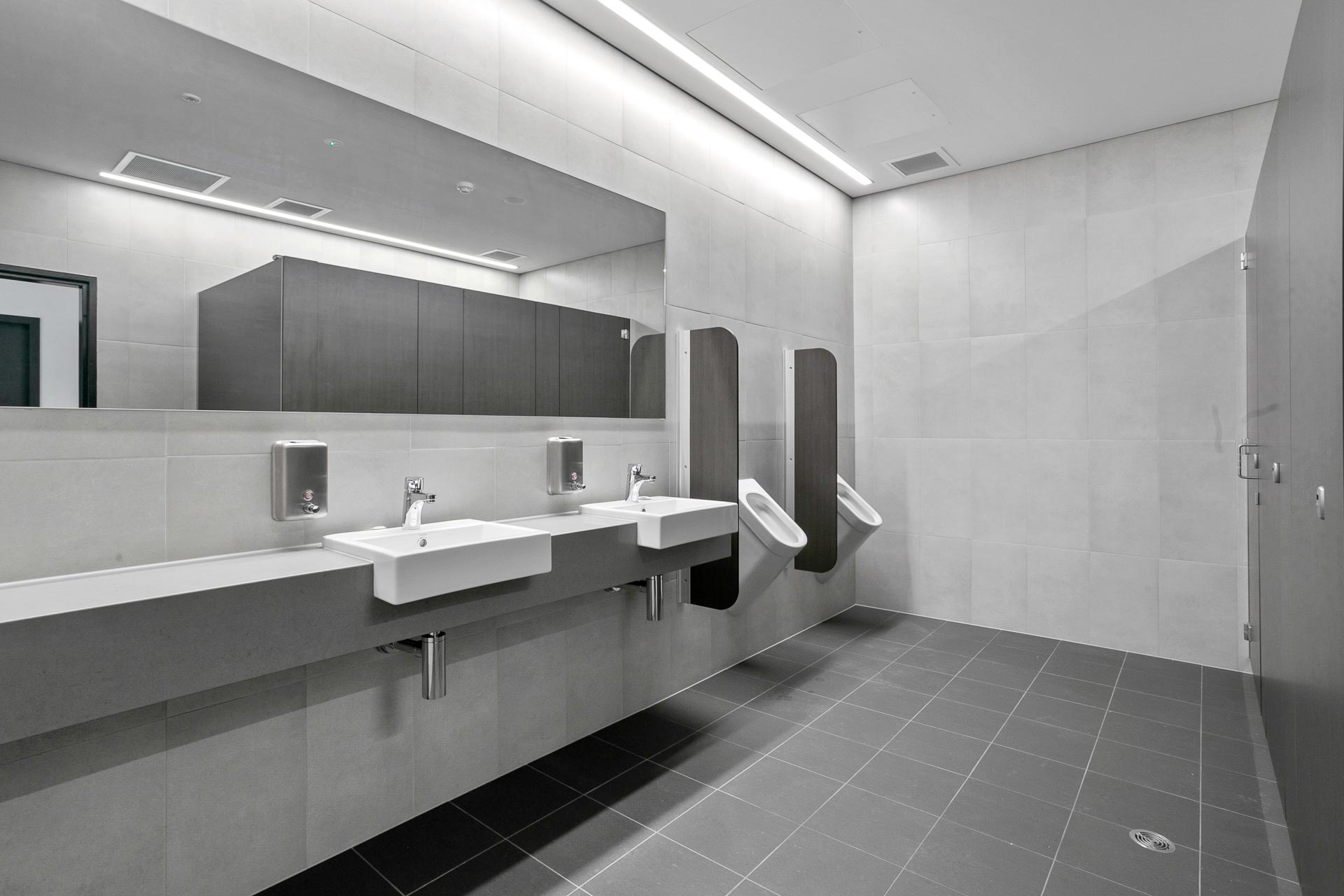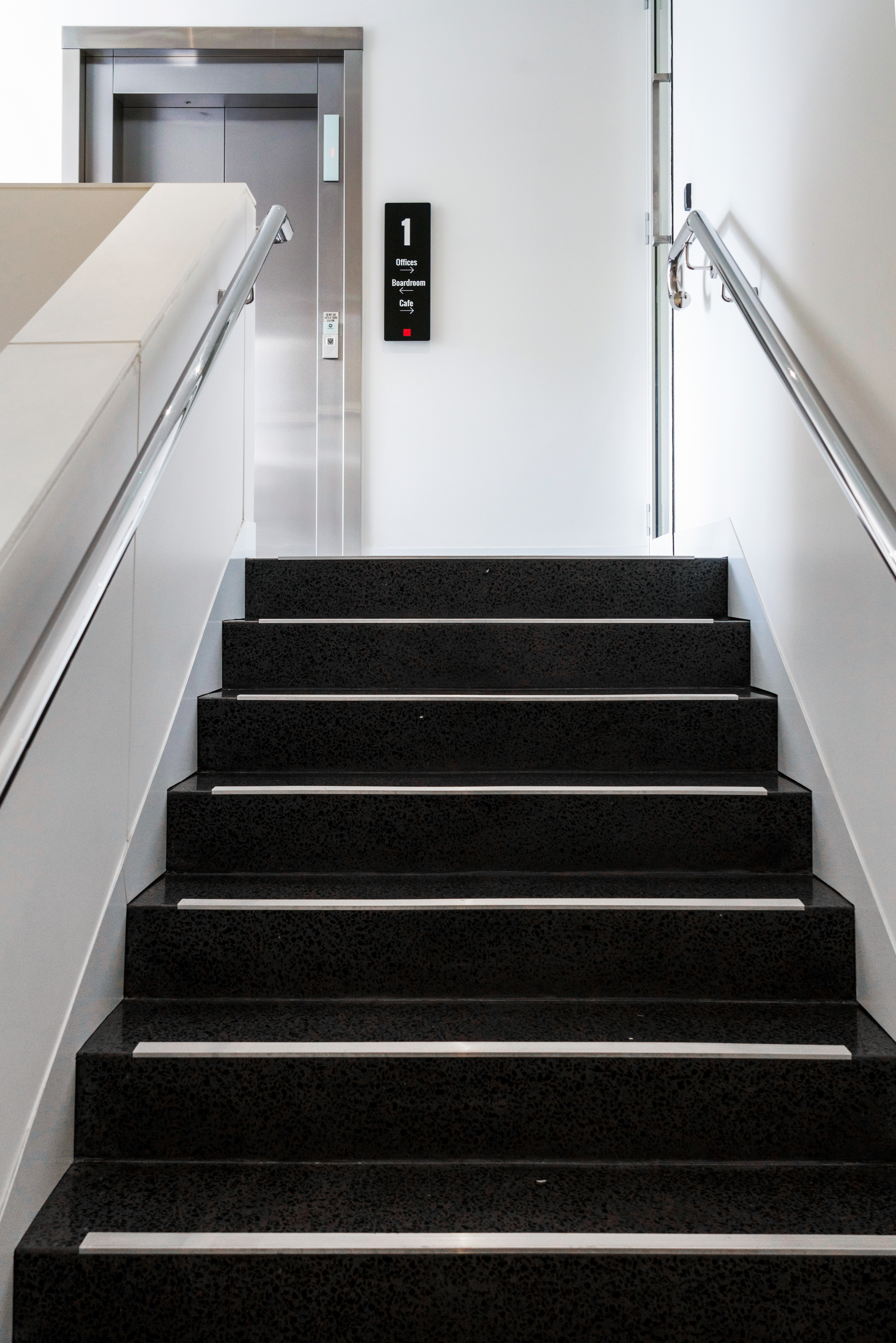 The large open plan office is strategically positioned on the first floor level with limited enclosed offices to eliminate the “notion of hierarchy” amongst the work culture. The focus on staff amenity continues in the office space with a multitude of meeting and other congregational spaces being provided throughout the first floor level. A balcony terrace extends to the entire perimeter of the glass floor to ceiling height windows and terminates in a large outdoor terrace with seating and bbq amenities for staff to enjoy. Large sliding doors within the glazed sections can be opened to enable cross flow ventilation across the office work space and the terrace balcony overlooking the workshop provides a visual connection to and from both areas.