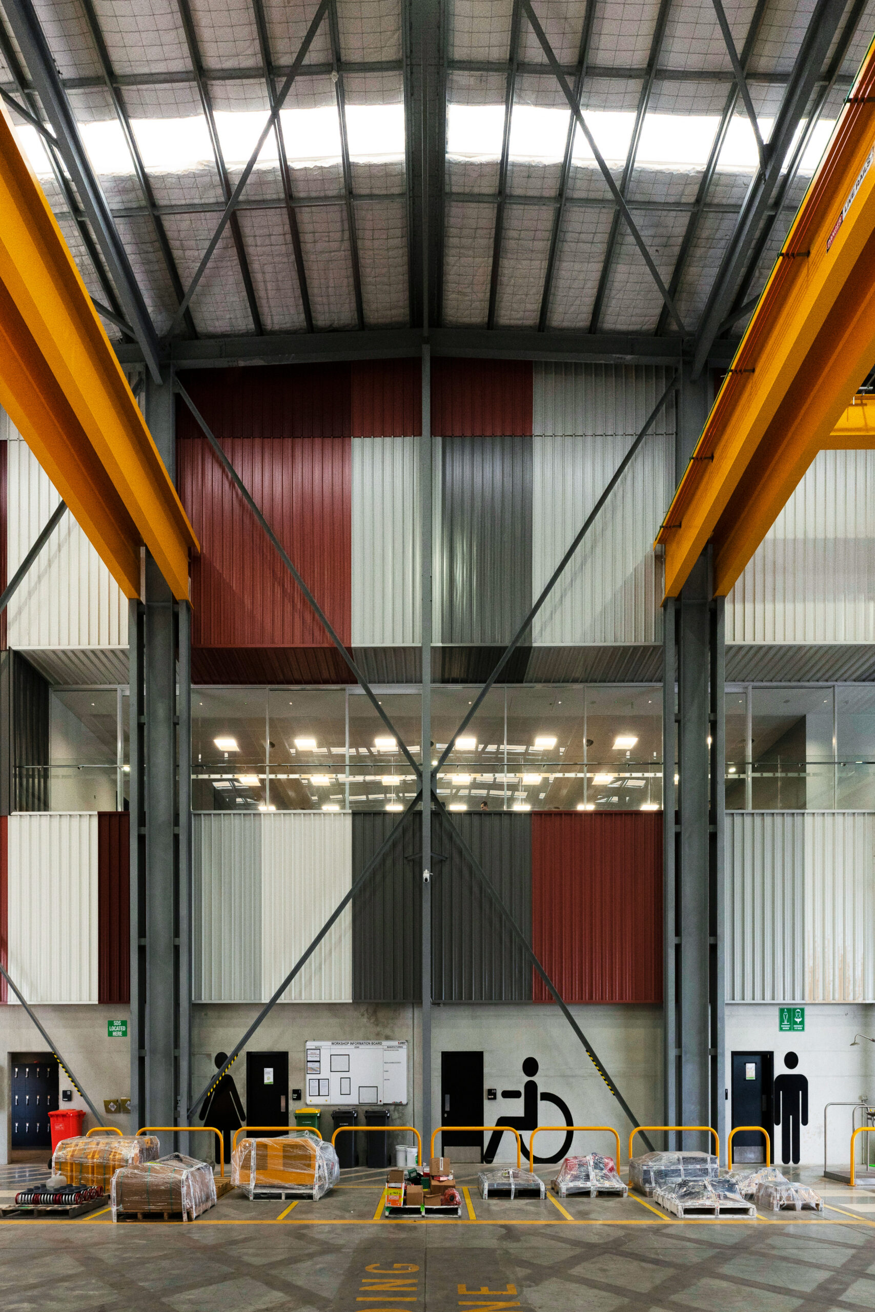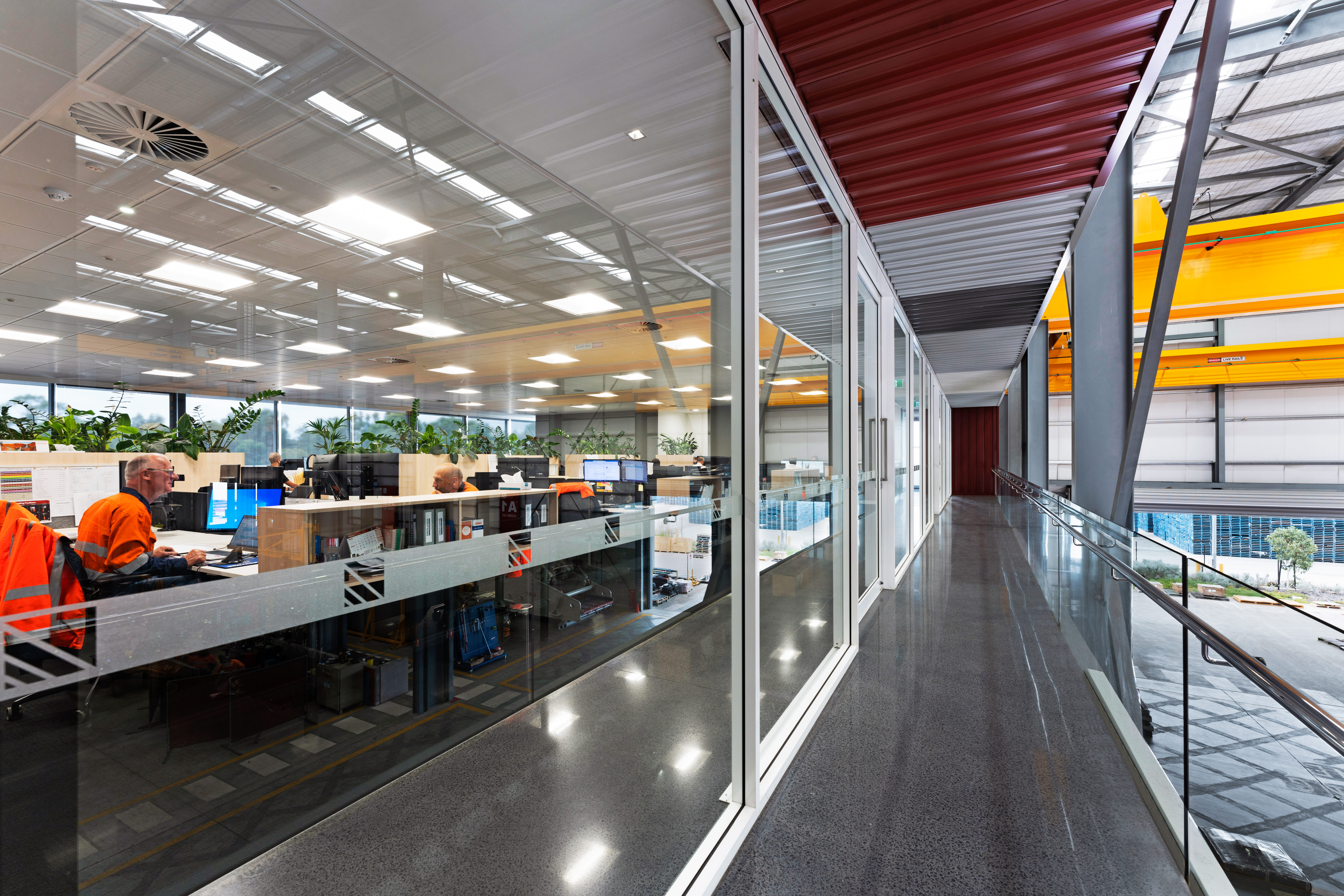 The design approach focussed on providing functional spaces to accommodate the many complex aspects of the JOEST operations, from the extraordinary height (12m) required manoeuvre large mining machines during manufacture, to the requirements for large vehicular access and manoeuvring outside and within the building. Significant design analysis was carried out to develop a floor plan that facilitated both the work flow and operations with a focus on improving the well being of staff by way of addressing the work place requirements, minimising distances of travel for workshop workers and providing superior amenities for all staff. The site is extensively paved for both vehicular and operational needs and a civil engineered drainage system ensures that rainwater is managed and disposed via landscaped sumps.