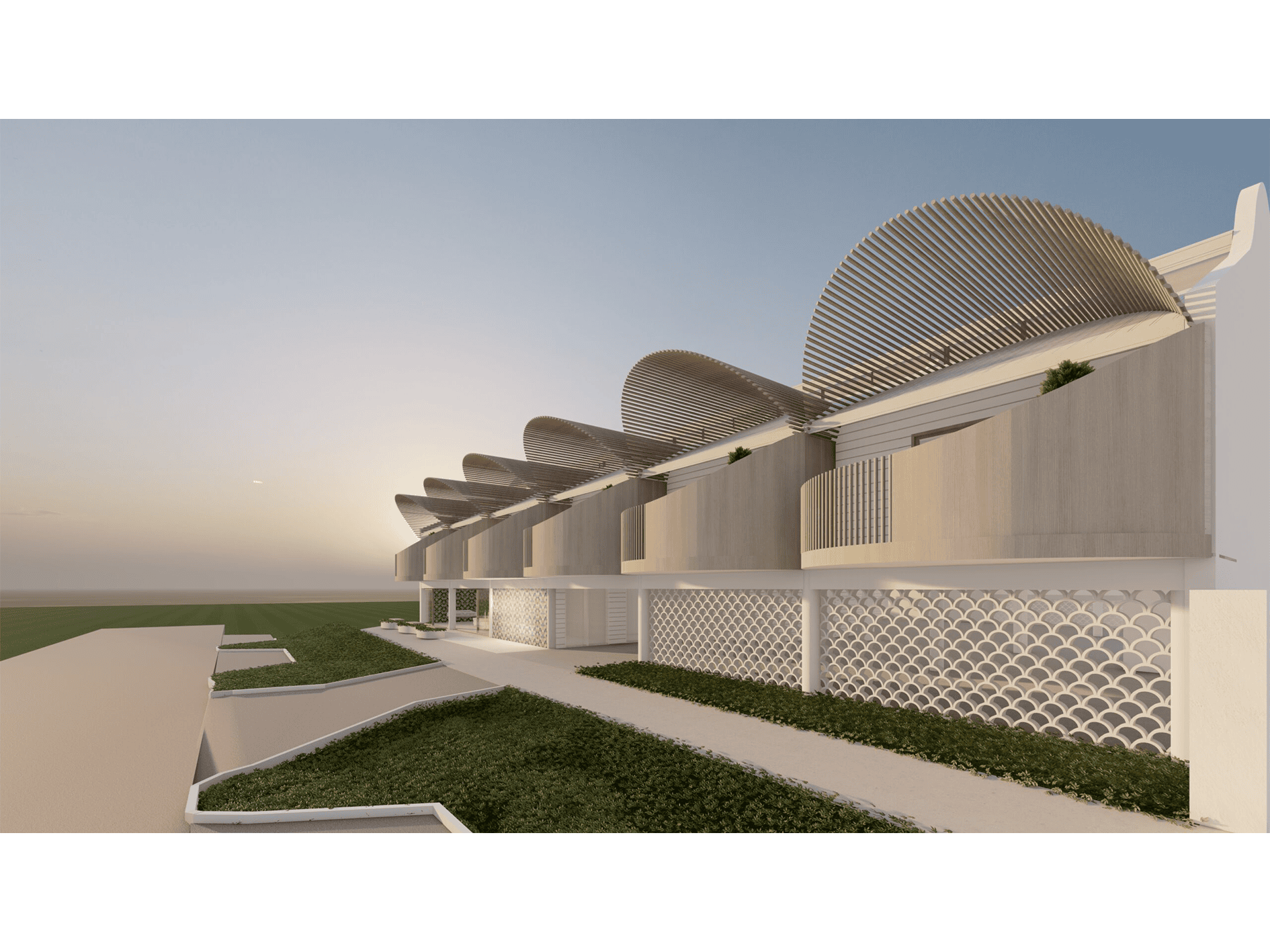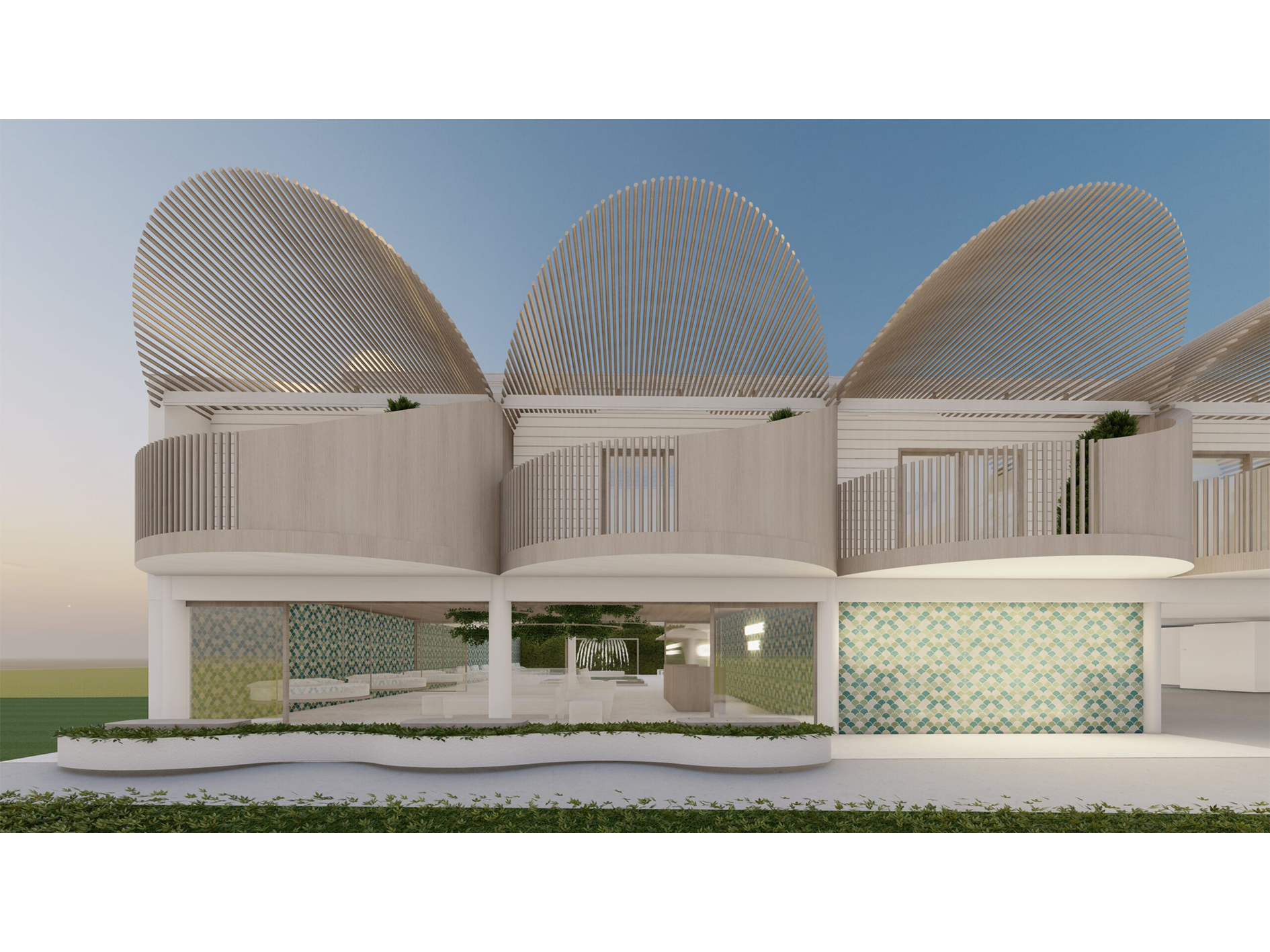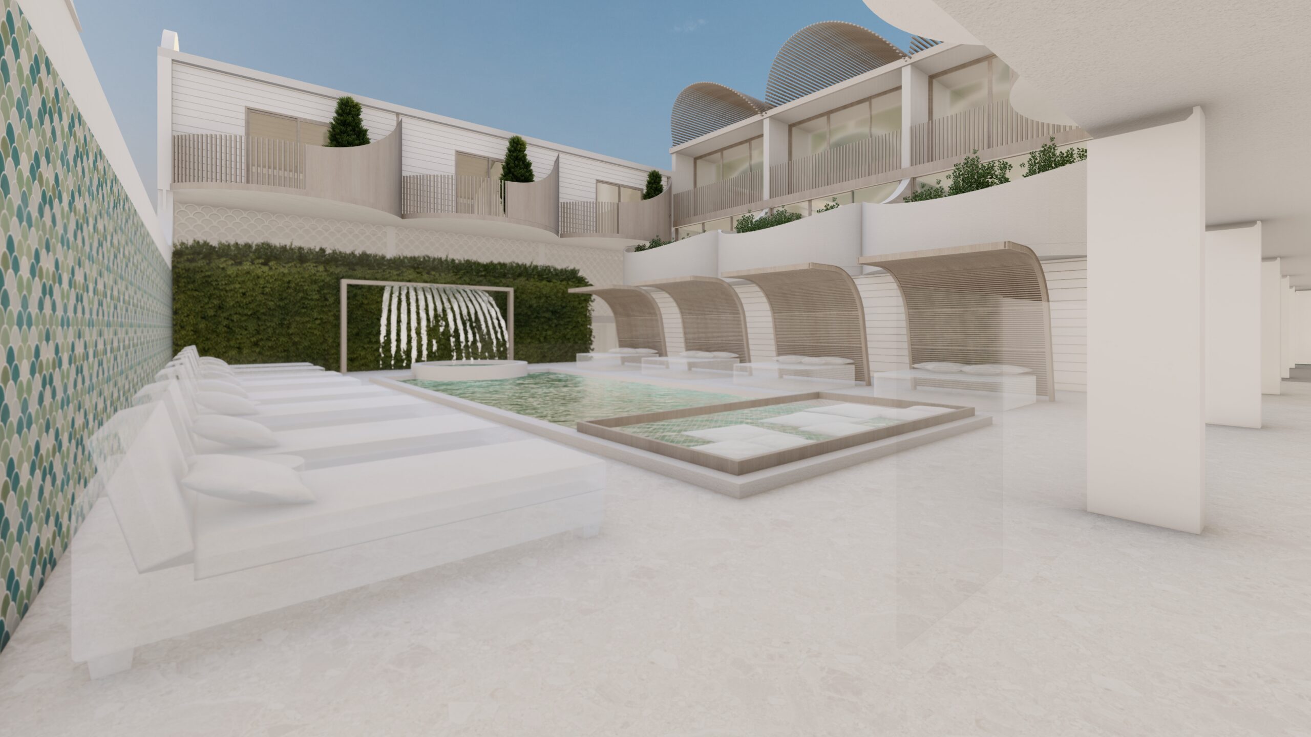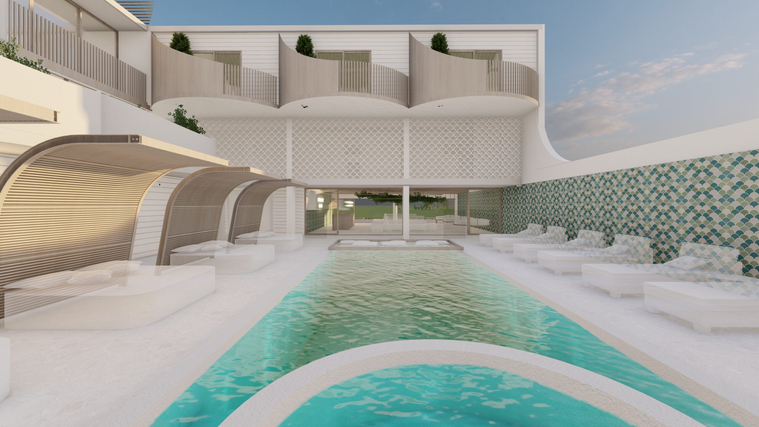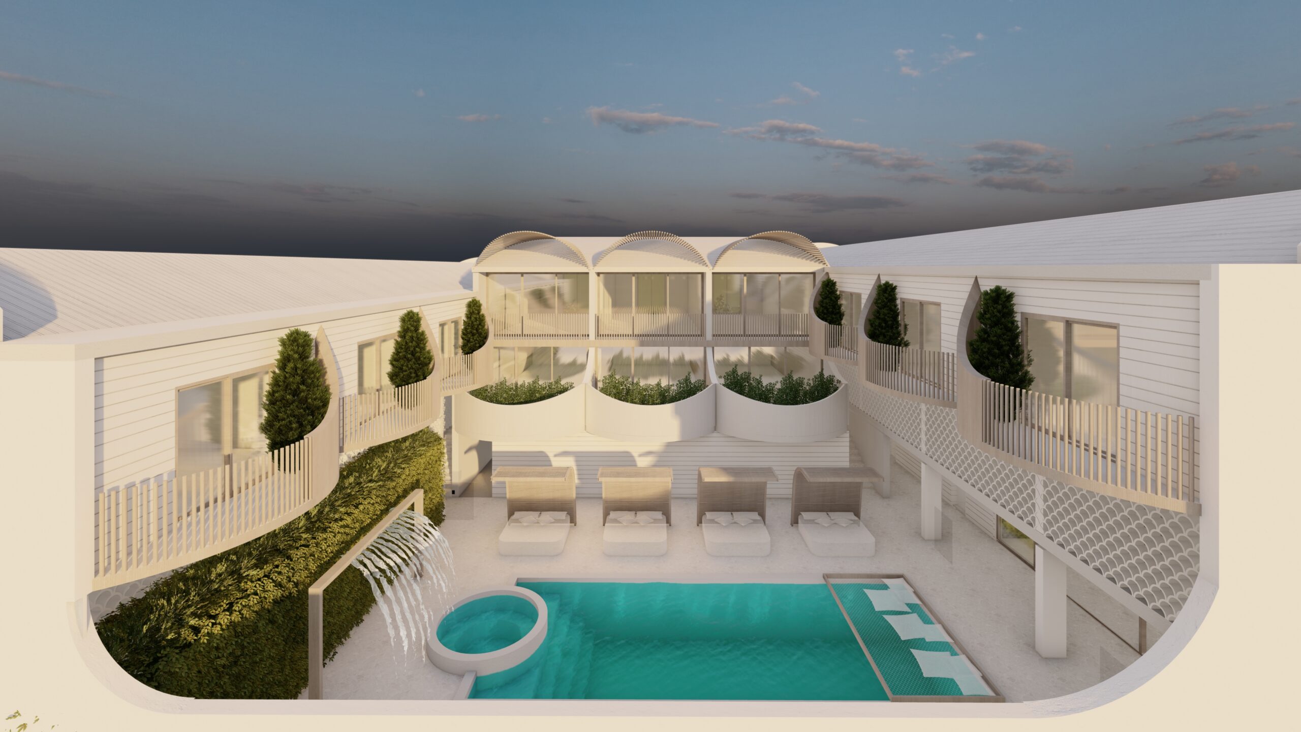 A conversion of an existing 1980s short stay apartments into a 5 star luxury accommodation development. Comprising 18 studio rooms with resort facilities and swimming pool, the material pallet follows a coastal theme with a twist of European luxury.
