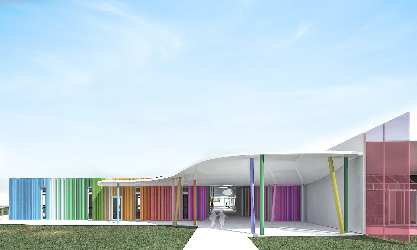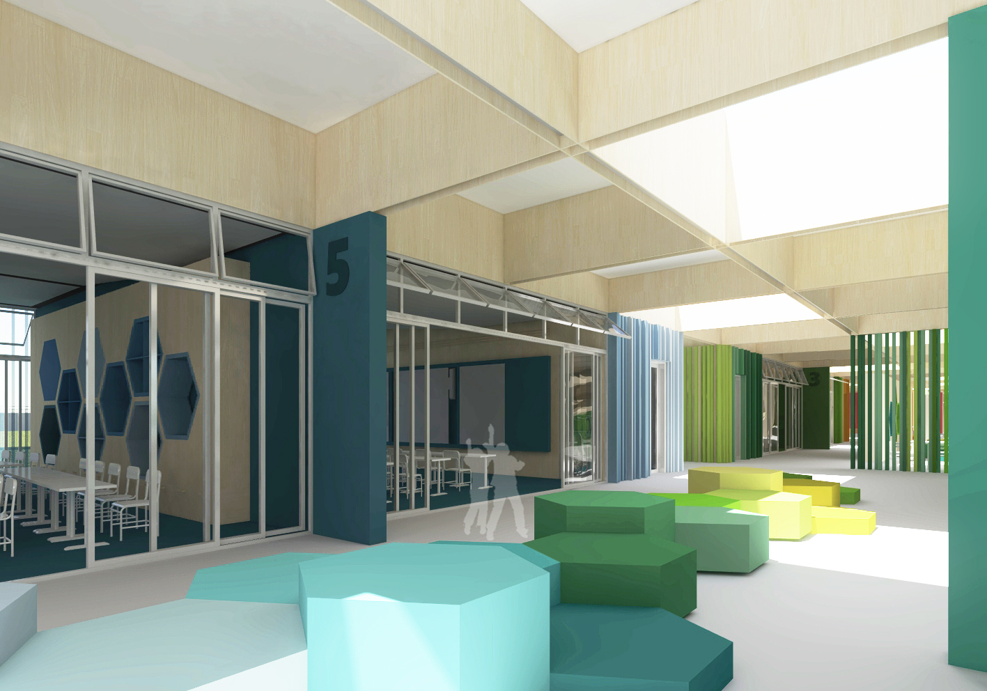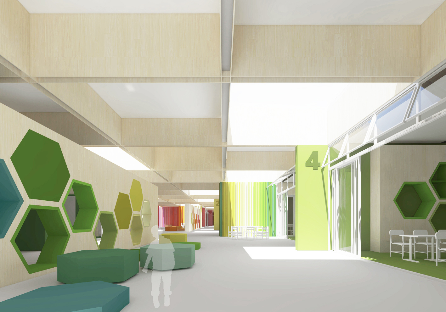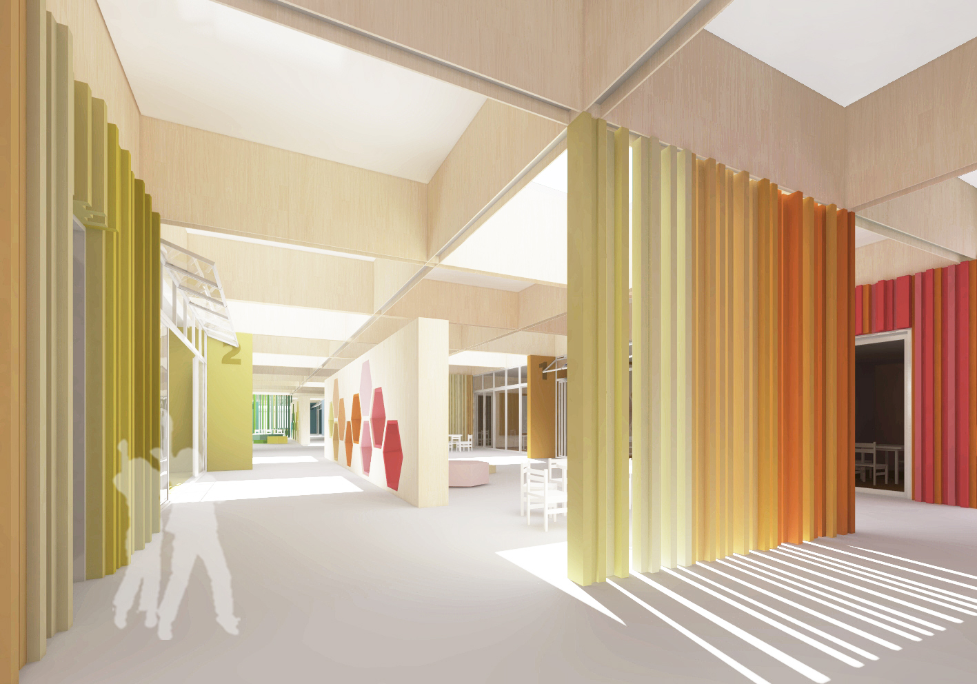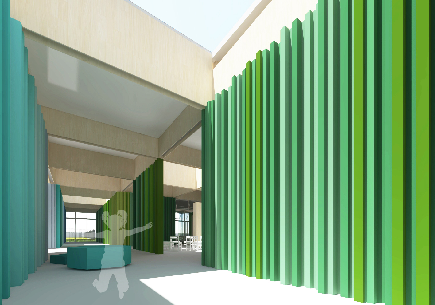 The PENCILS in their colours and forms are the fundament of the new school concept, giving a clear character to the building and freshness on the design look.The outcome of this space is invitingly warm and nurturing with a distinctive, playful ambiance.