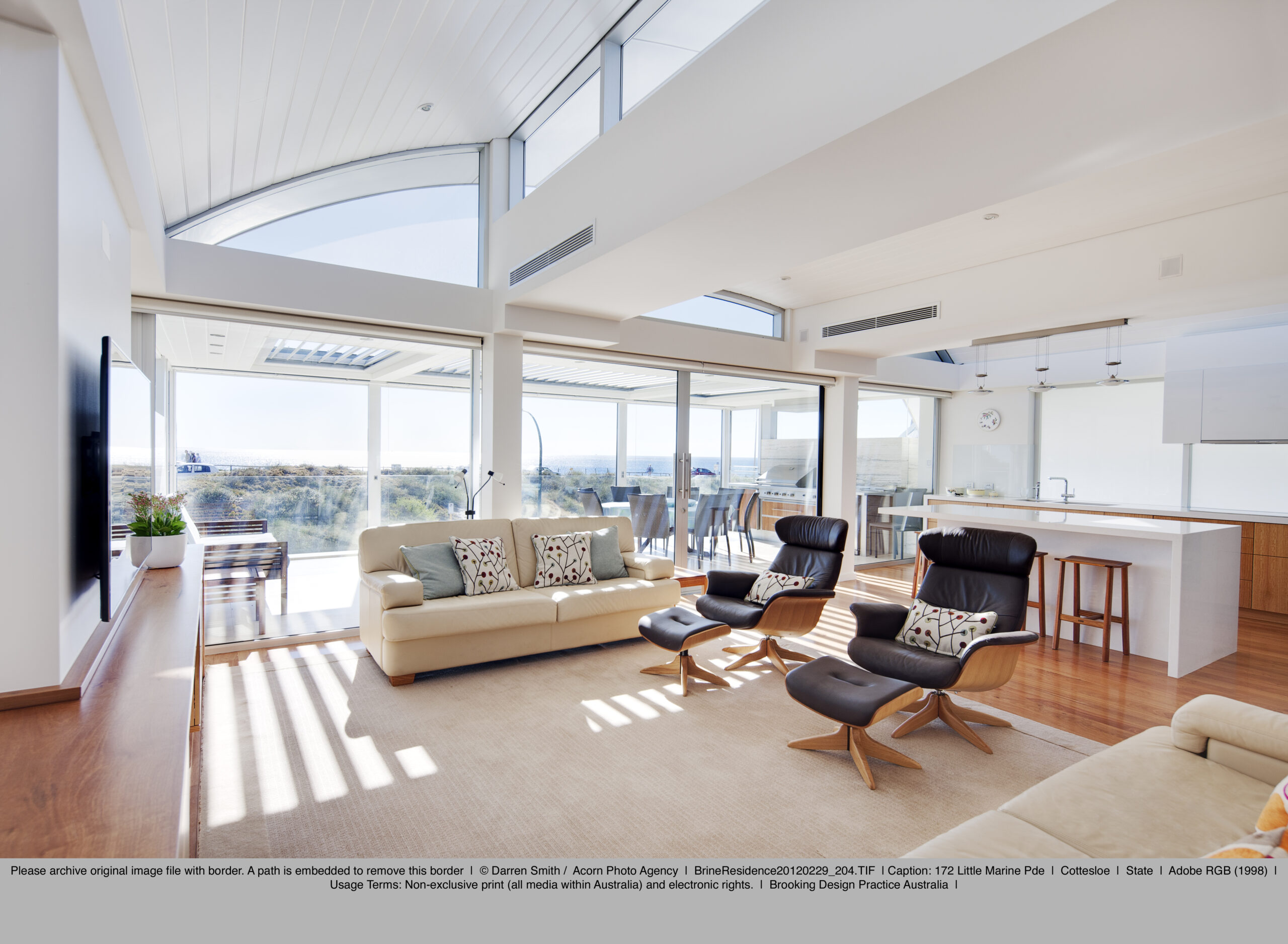 The design of a contemporary beach-side home, the core design philosophy centres on a solution that incorporates intelligent building elements within the fabric of the residence that enable the occupants to control and adapt to the impact of the prevailing weather conditions whilst providing for a high degree of amenity and comfort.