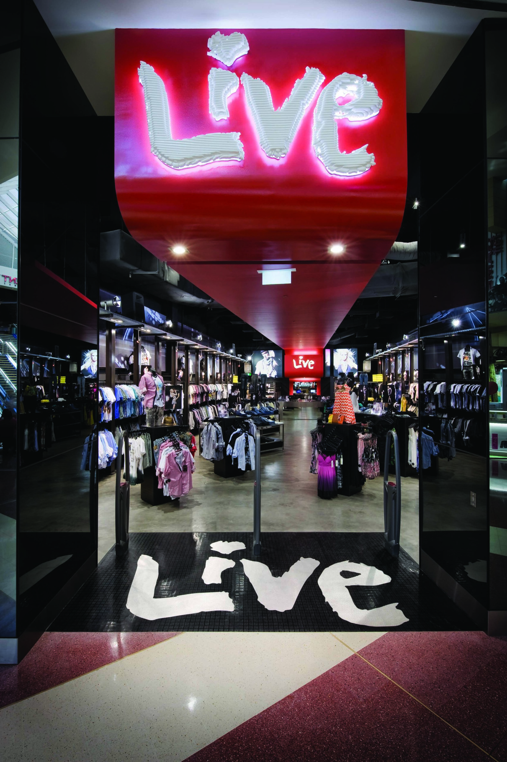 The creation of Lives Adelaide store was the first of which to expand the brand into the South Australian market. The concept sought to create a more dramatic theme integrating strong retail & advertising elements into the design. Contrasting the raw exposed ceiling elements are the industrial framework housing racks of wall to wall product. The central red signature ceiling extends the length of the store and terminates at the rear with billboard style graphics.