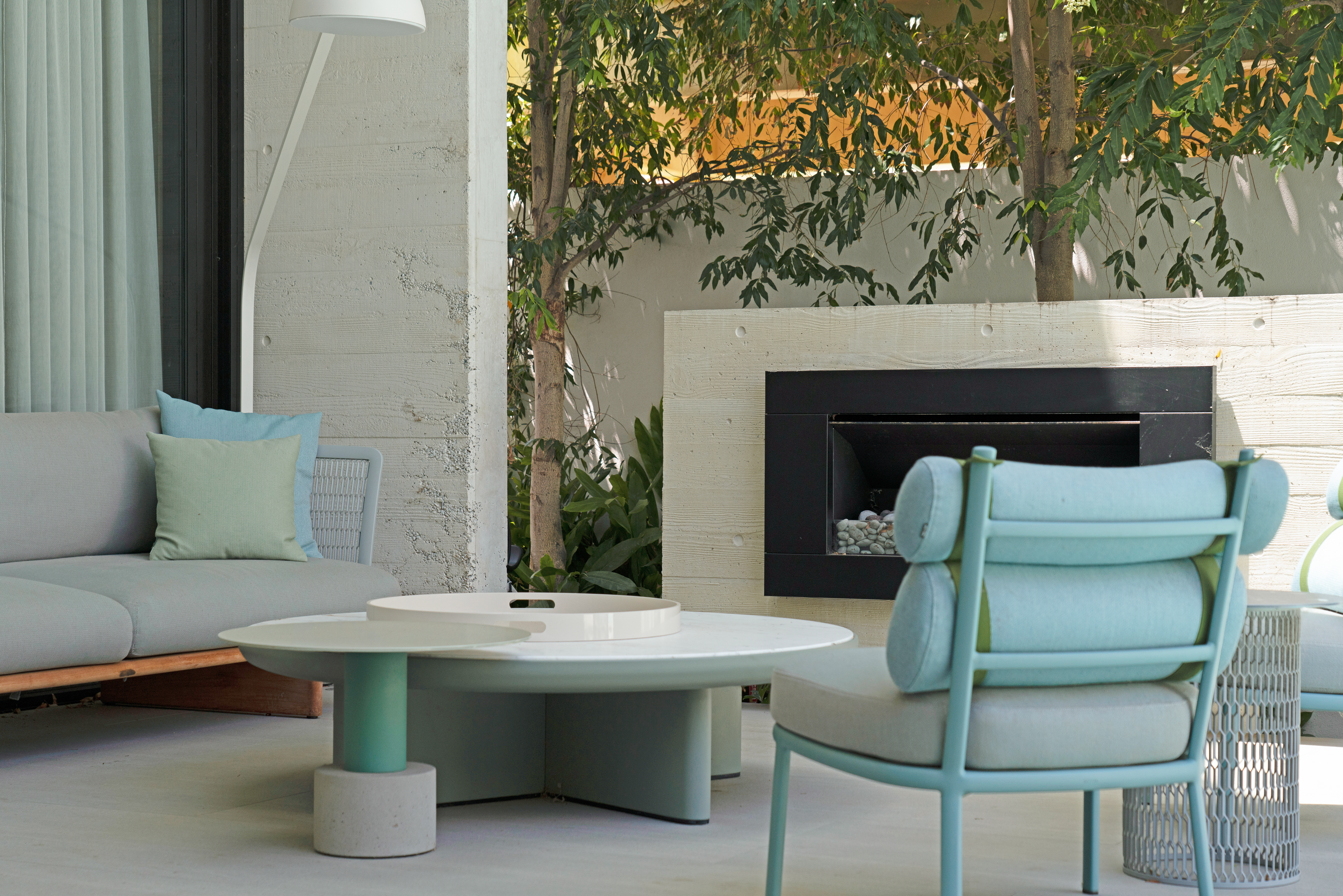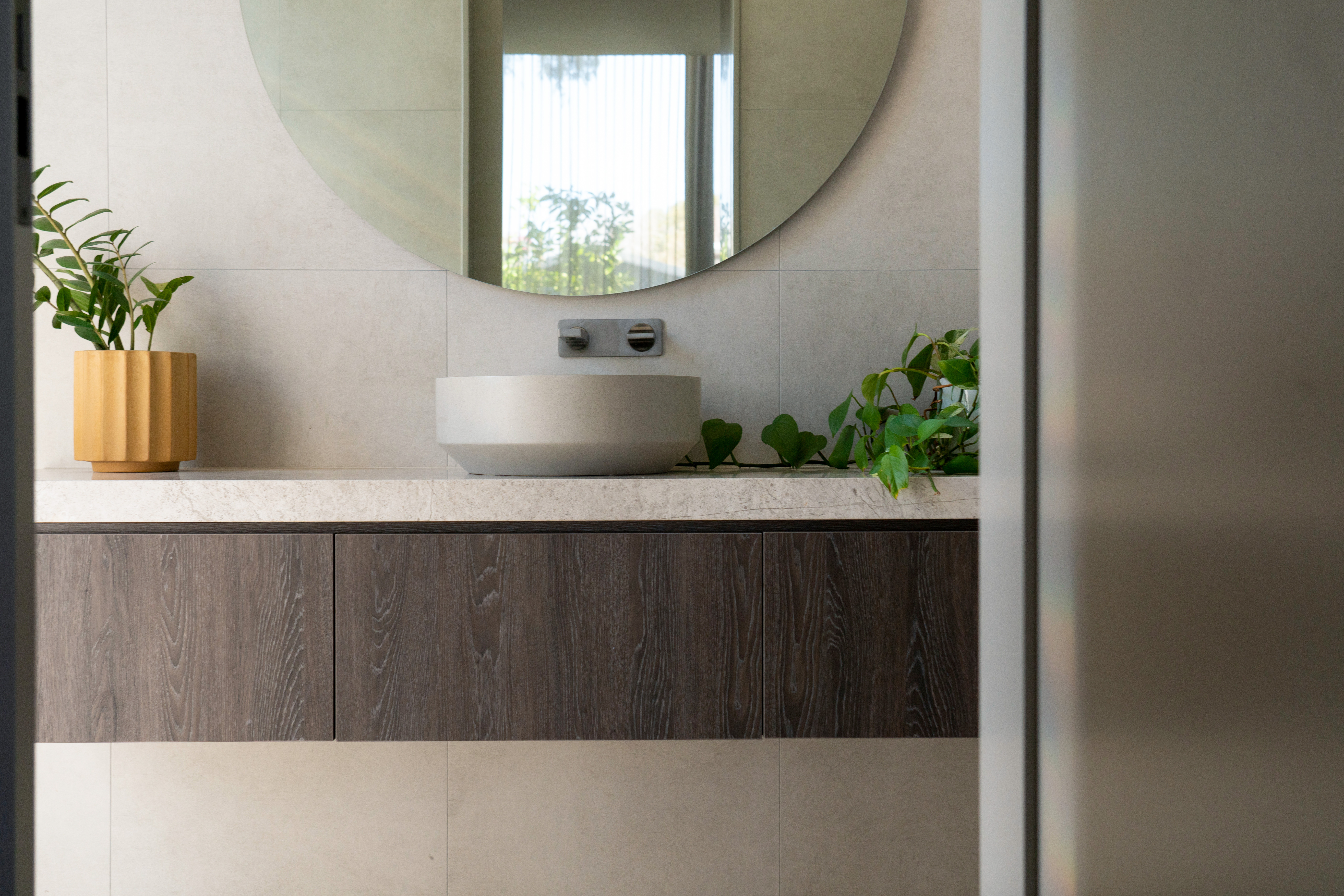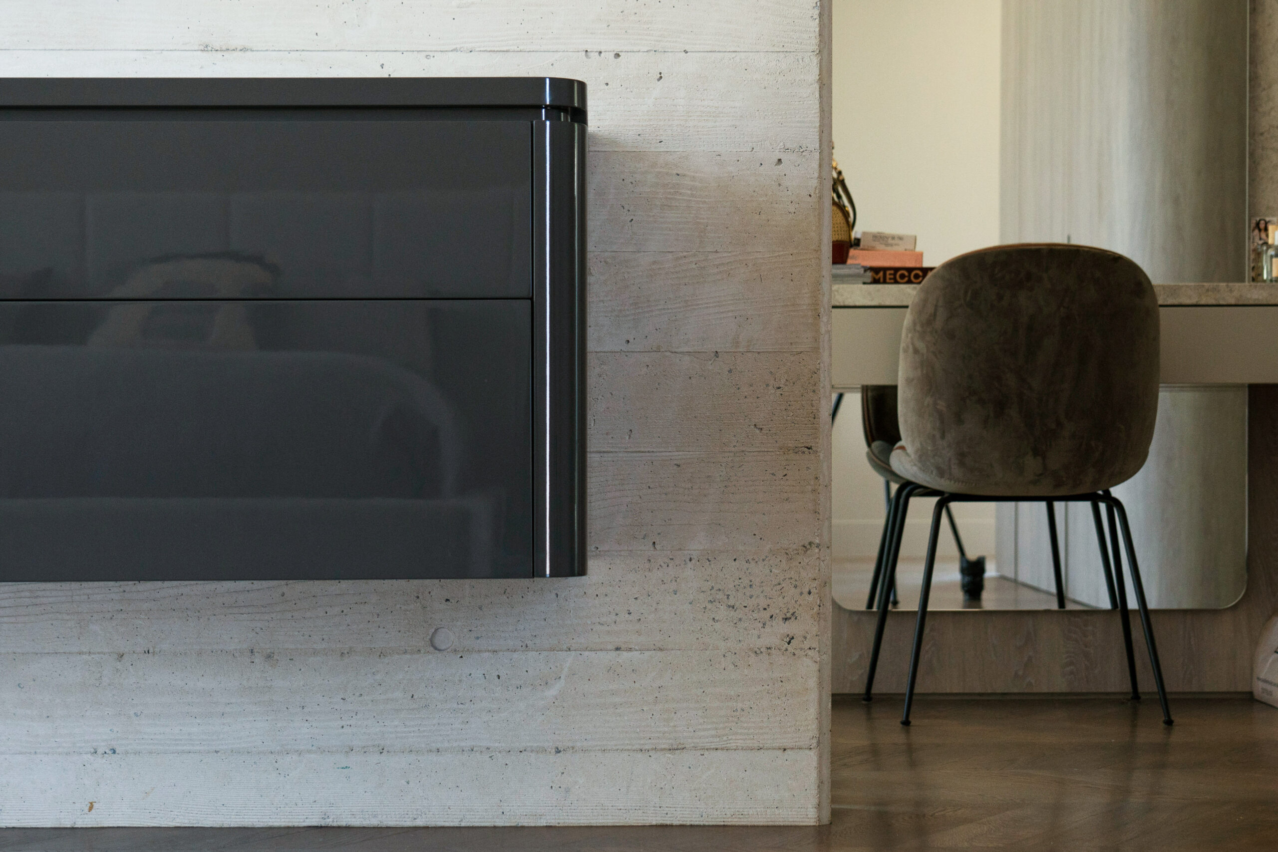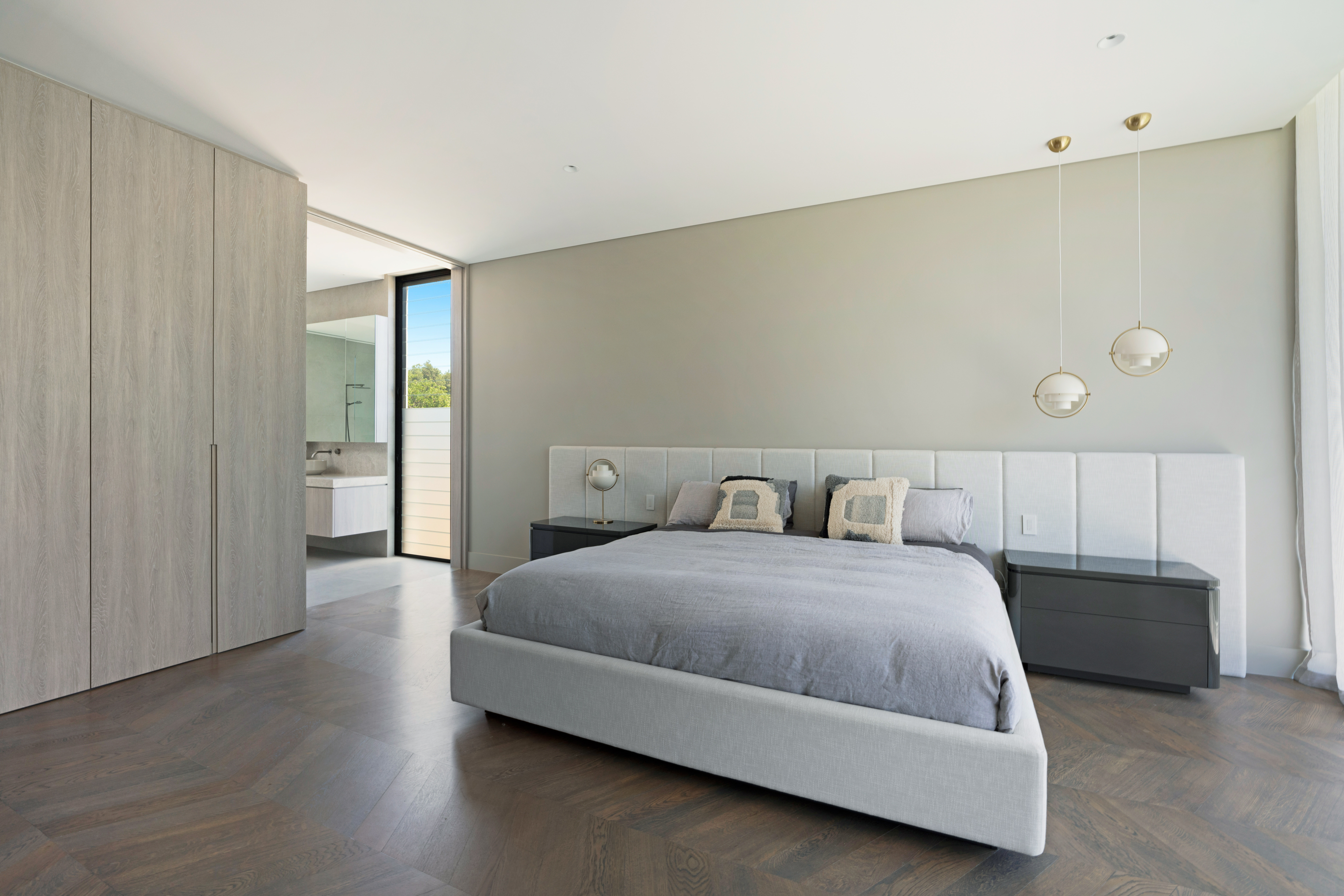 Texture, materiality and light is the design mantra for this contemporary two-level home. The U shaped plan extends the full length of the site enveloping a central outdoor living terrace complete with swimming pool positioned to maximise the benefits of the solar orientation. Off form white concrete contrasts crisp render and expanses of glass where an overlay of custom profiled steel fins define a sense of privacy and enclosure to each of the numerous terraces. The open plan nature of the interior space provides continuity, flow and connection throughout the home.