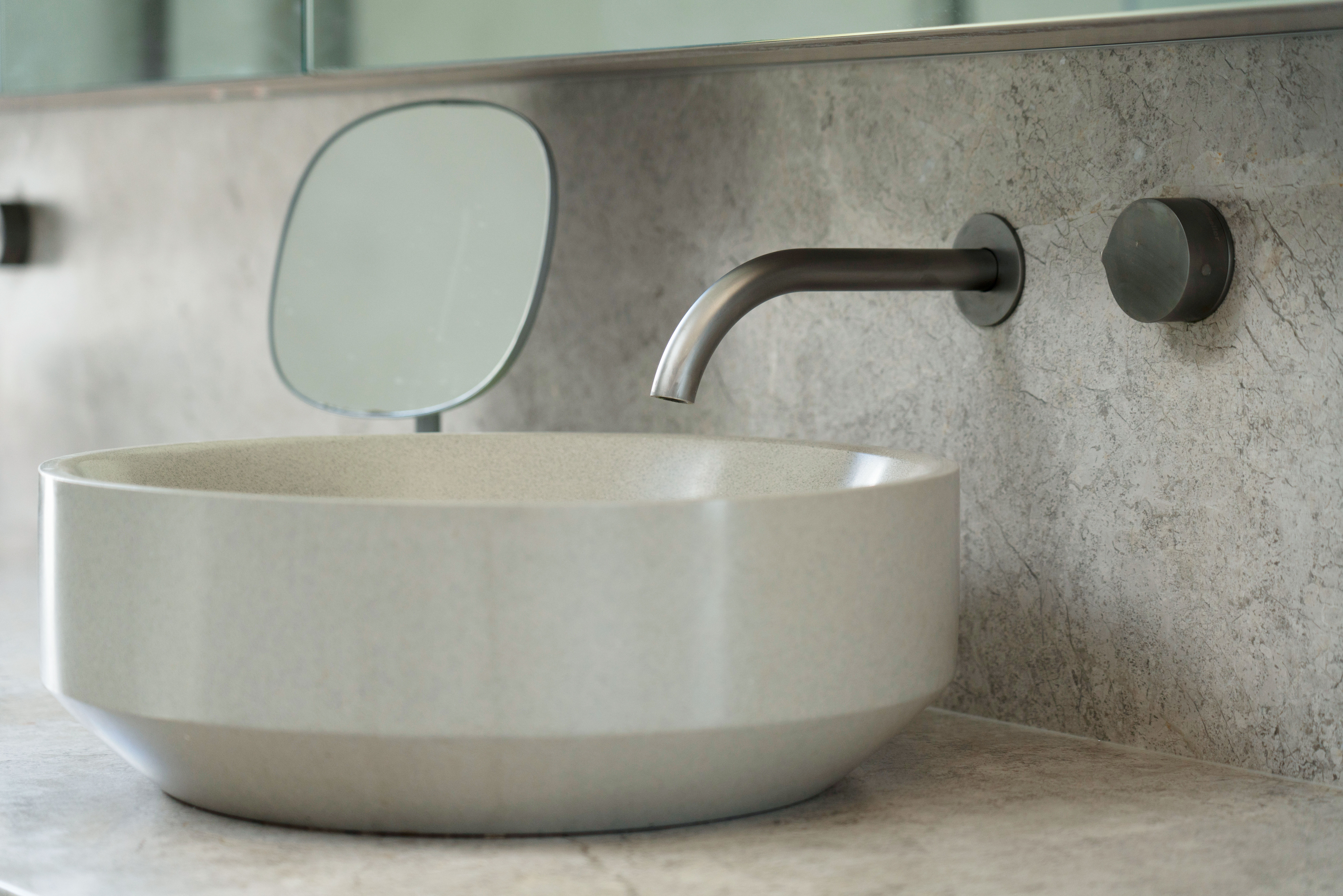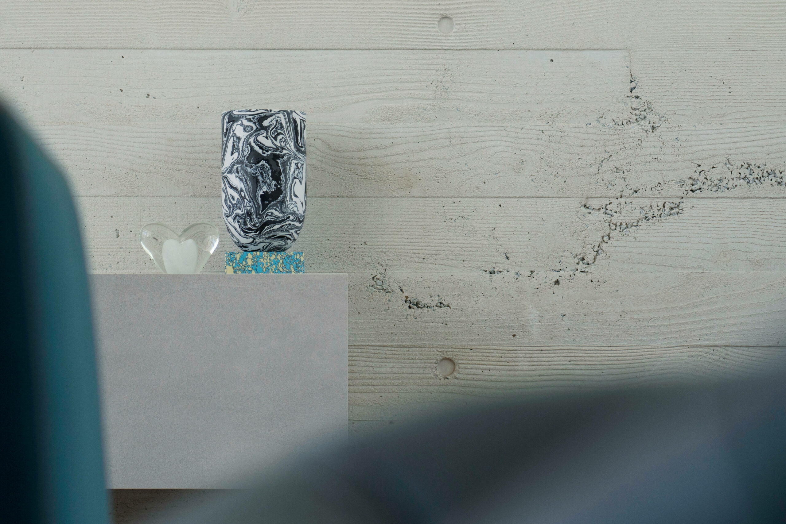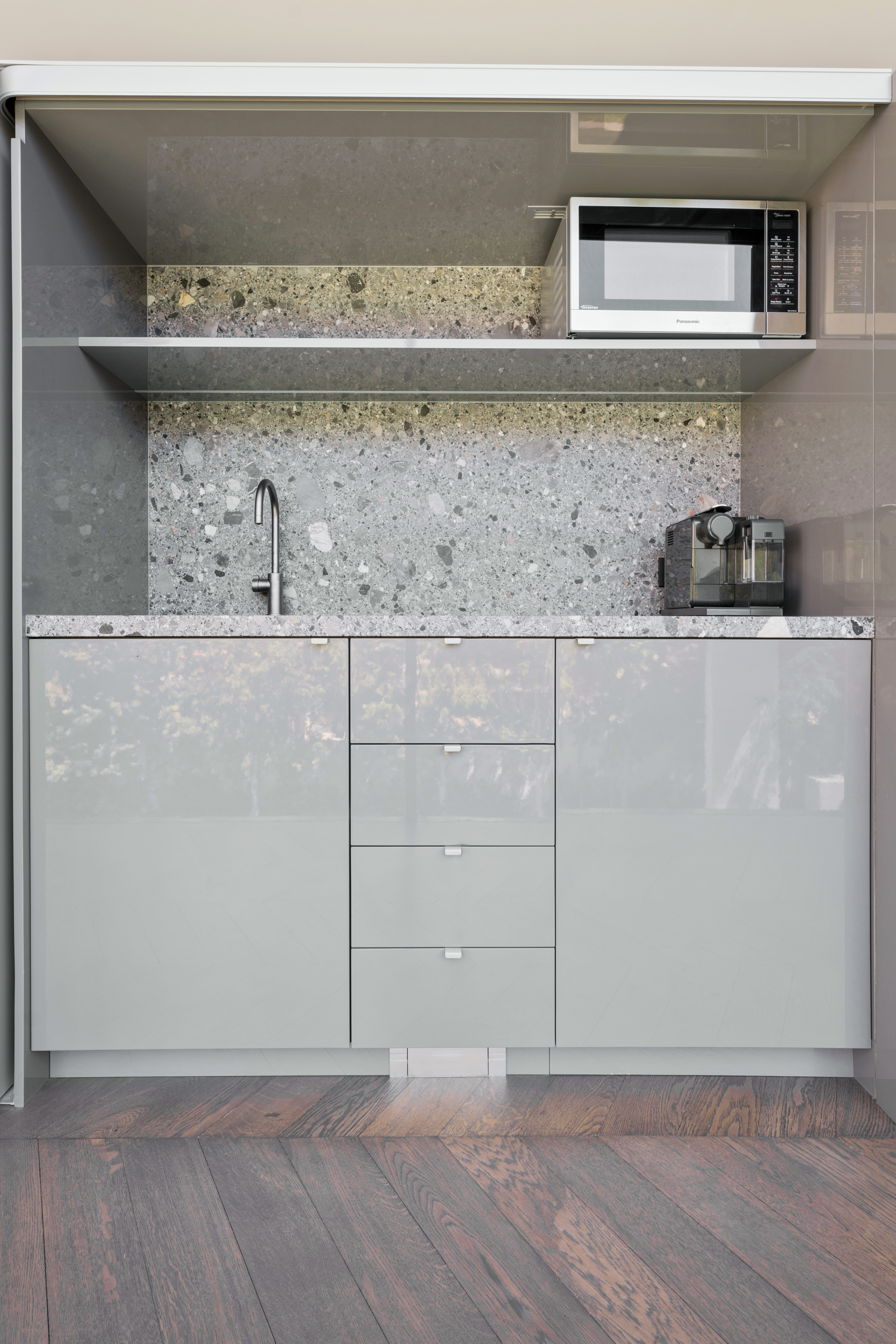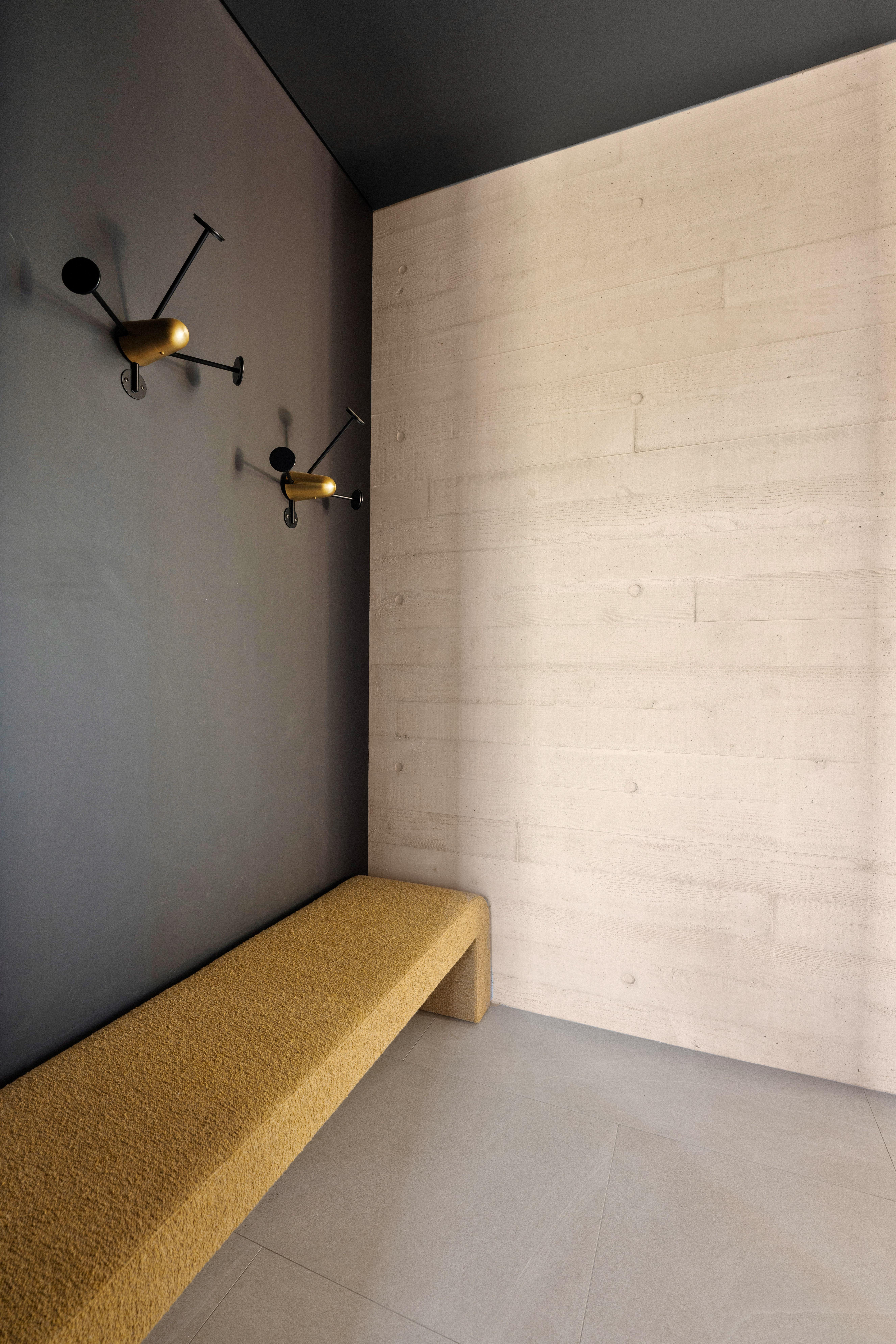 Texture, materiality and light is the design mantra for this contemporary two-level home. The U shaped plan extends the full length of the site enveloping a central outdoor living terrace complete with swimming pool positioned to maximise the benefits of the solar orientation. Off form white concrete contrasts crisp render and expanses of glass where an overlay of custom profiled steel fins define a sense of privacy and enclosure to each of the numerous terraces. The open plan nature of the interior space provides continuity, flow and connection throughout the home.